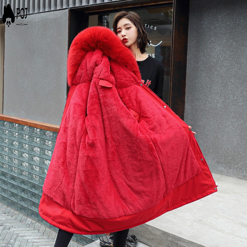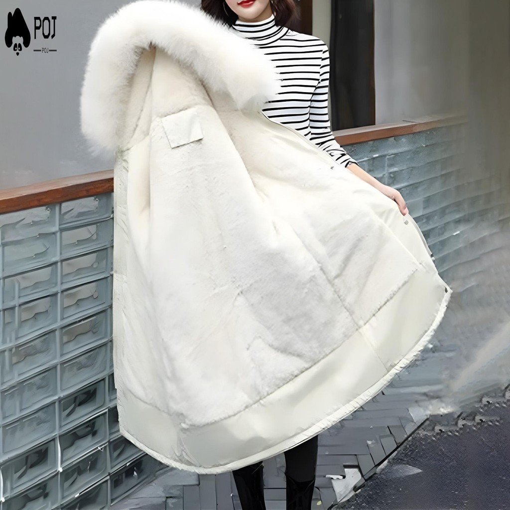เสื้อโค้ทคลุมด้วยผ้าฤดูหนาวของผู้หญิงอบอุ่นยาวปักเป้าเสื้อคลุมกับฮู้ด