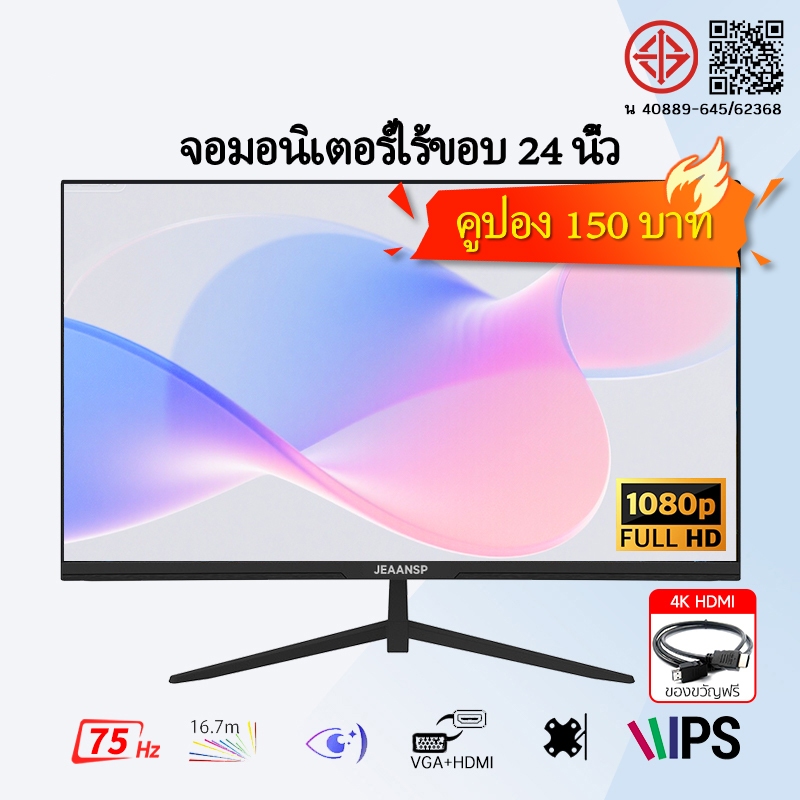 จอมอนิเตอร์ไร้ขอบ Full HD 22/24/25 นิ้ว HDMI VGA ใช้ทำงาน ดูหนัง Monitor