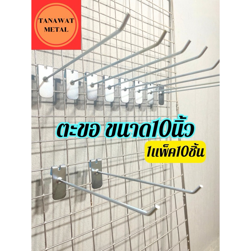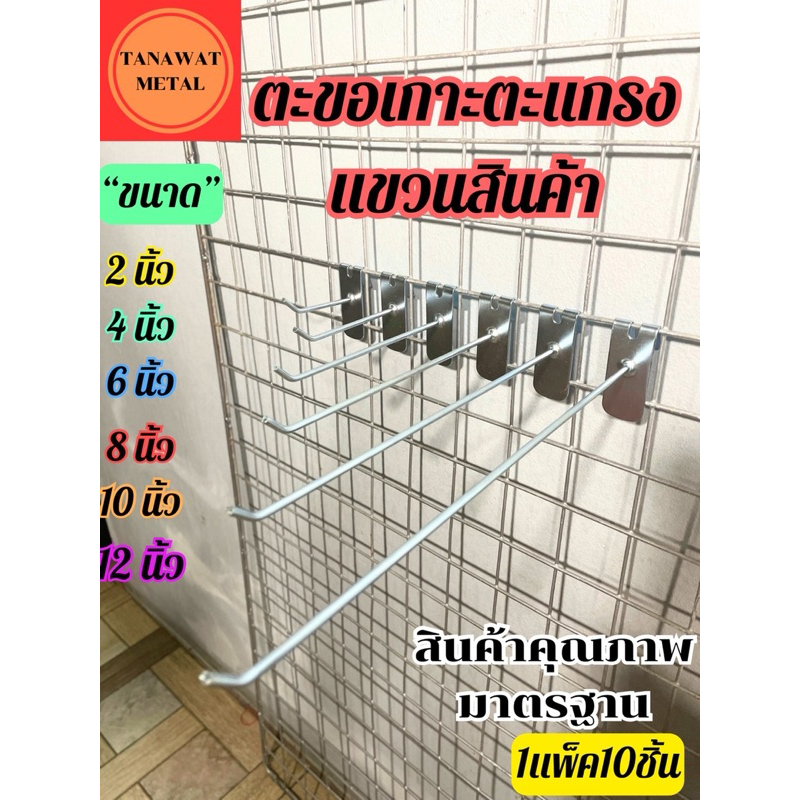 ตะขอเกาะตะแกรงแขวนสินค้า ฮุกแป้น 2นิ้ว 4นิ้ว 6นิ้ว 8นิ้ว 10นิ้ว 12นิ้ว 1แพ็ค10ชิ้น