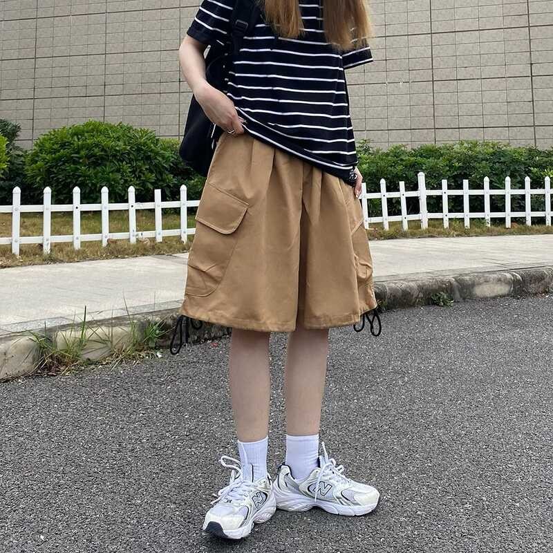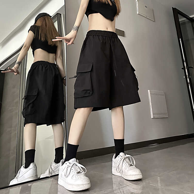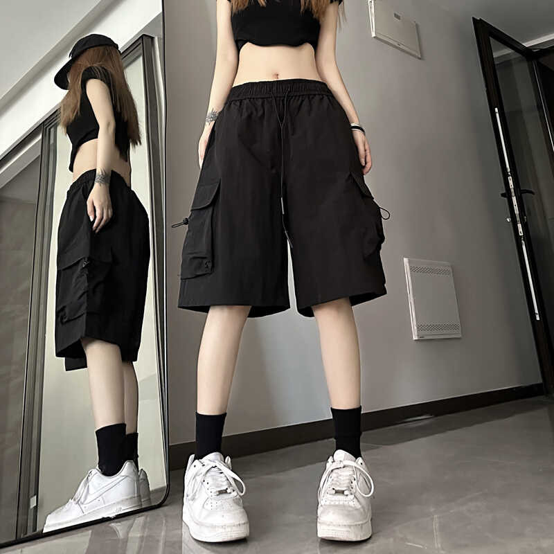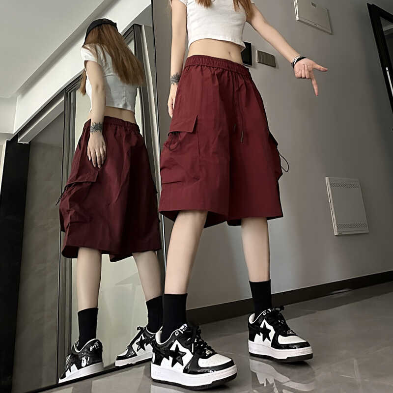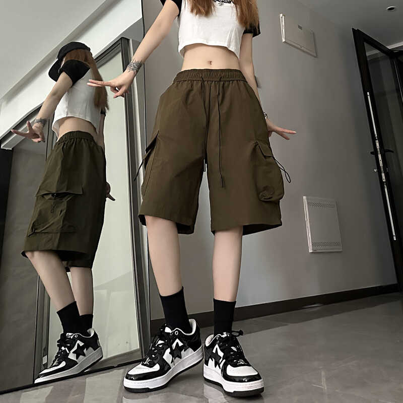▣ กางเกงทำงานขาสั้นสำหรับผู้หญิง,เอวสูงใส่สบายผอมขากว้างทรงหลวมกระชับสัดส่วนและแห้งเร็วกีฬาอเมร