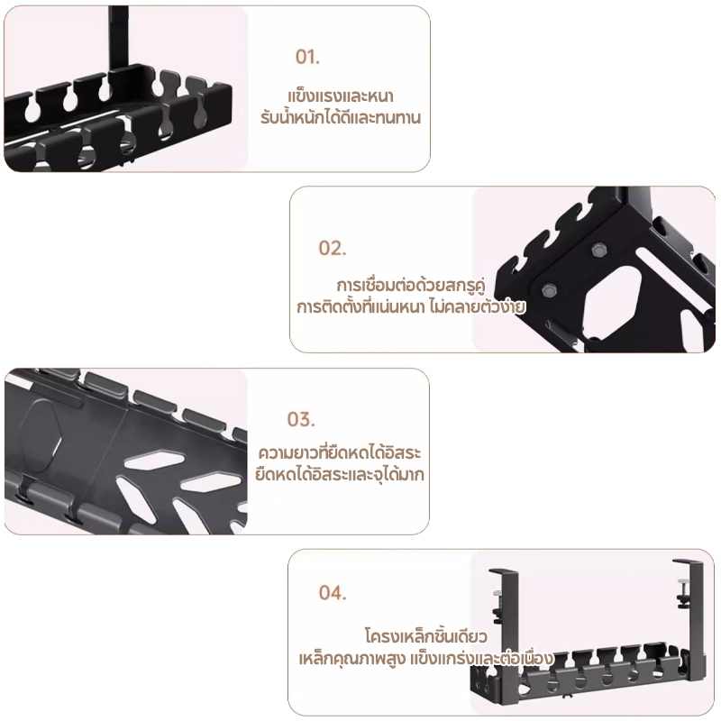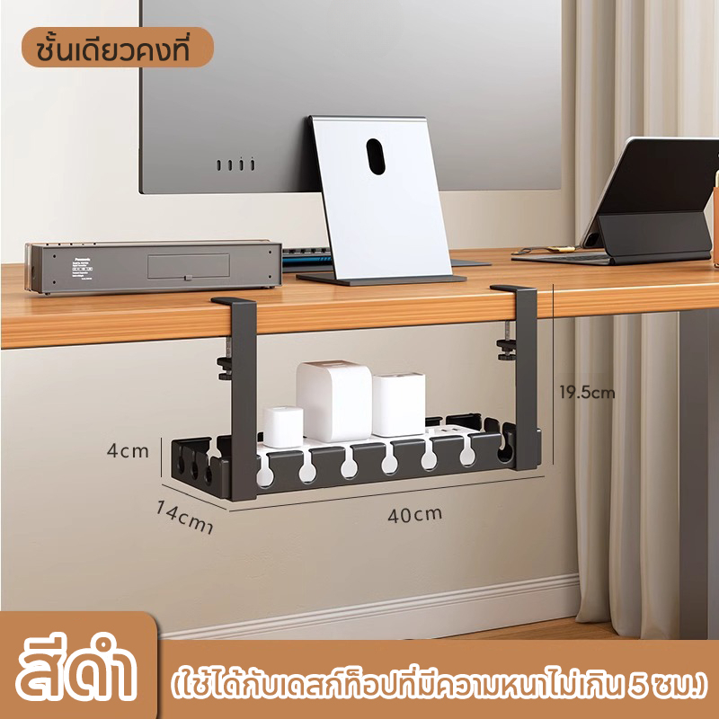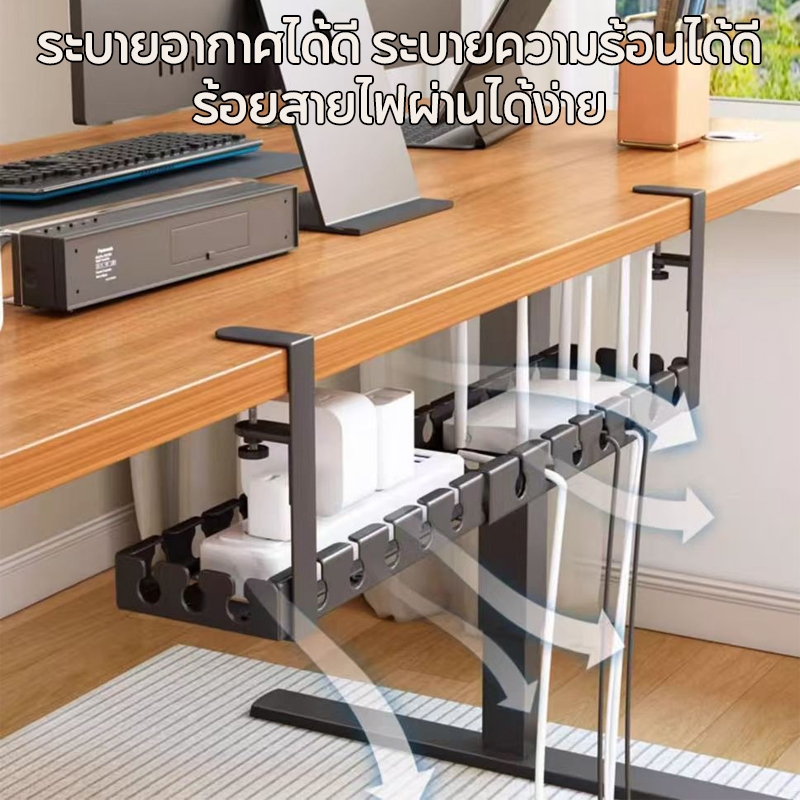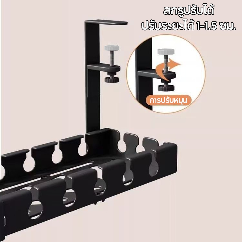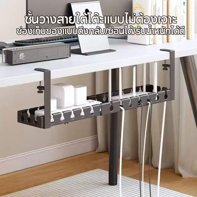 ที่เก็บสายไฟ 43-74cm รางเก็บสายไฟใต้โต๊ะ ไม่ต้องเจาะรู ทนทาน พร้อมแคลมป์ สําหรับจัดระเบียบบ้าน