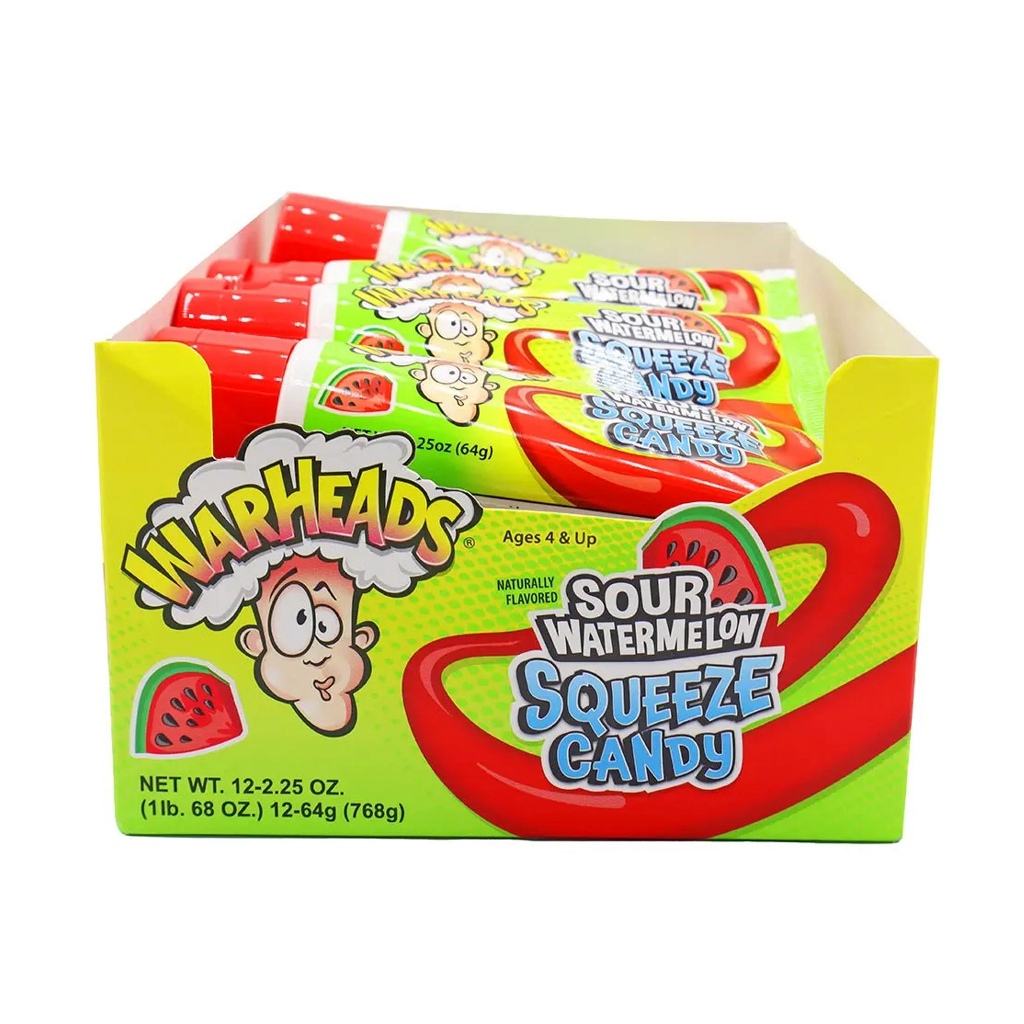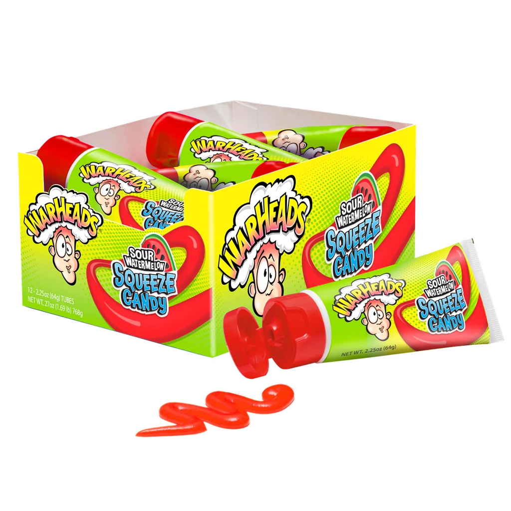 [ยกbox 12 ชิ้น] WARHEADS ลูกอมชนิดเจลกลิ่นแตงโม (SOUR WATERMELON SQUEEZE CANDY)