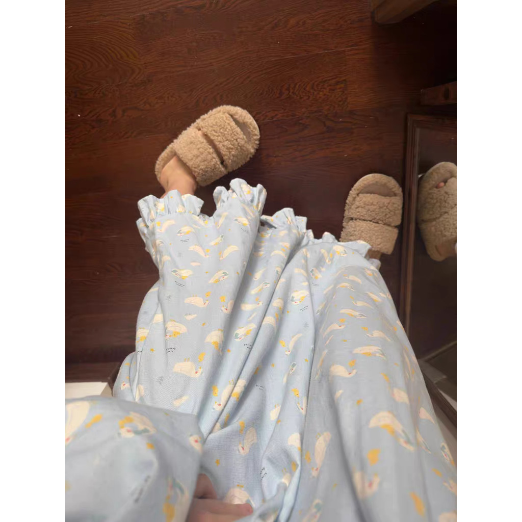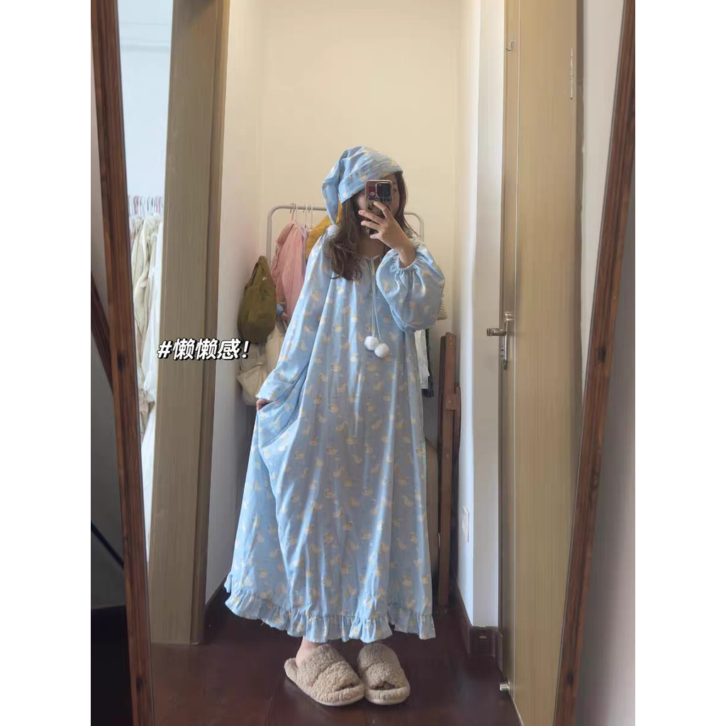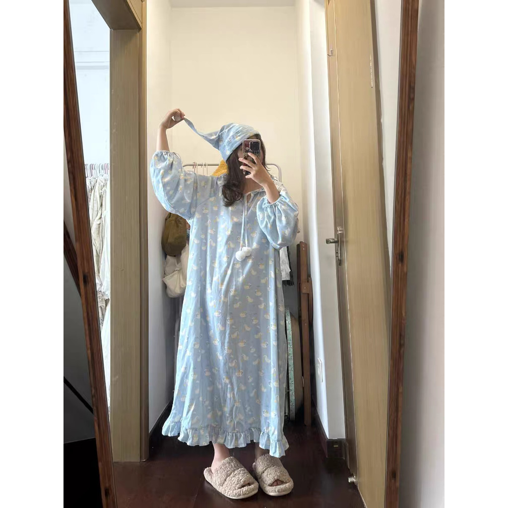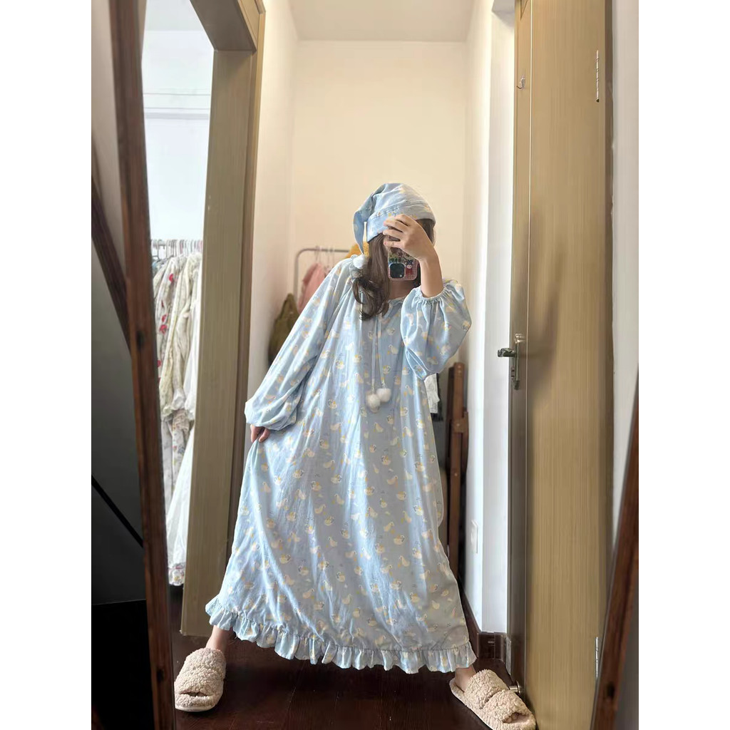 [JLYQ] เวอร์ชั่นเกาหลี ins น่ารักห่านสีขาวขนาดใหญ่รูปแบบการ์ตูน Nightdress หญิง, สไตล์ใหม่ Influencer หลวม Lazy Homewear ชุดนอน