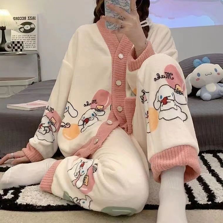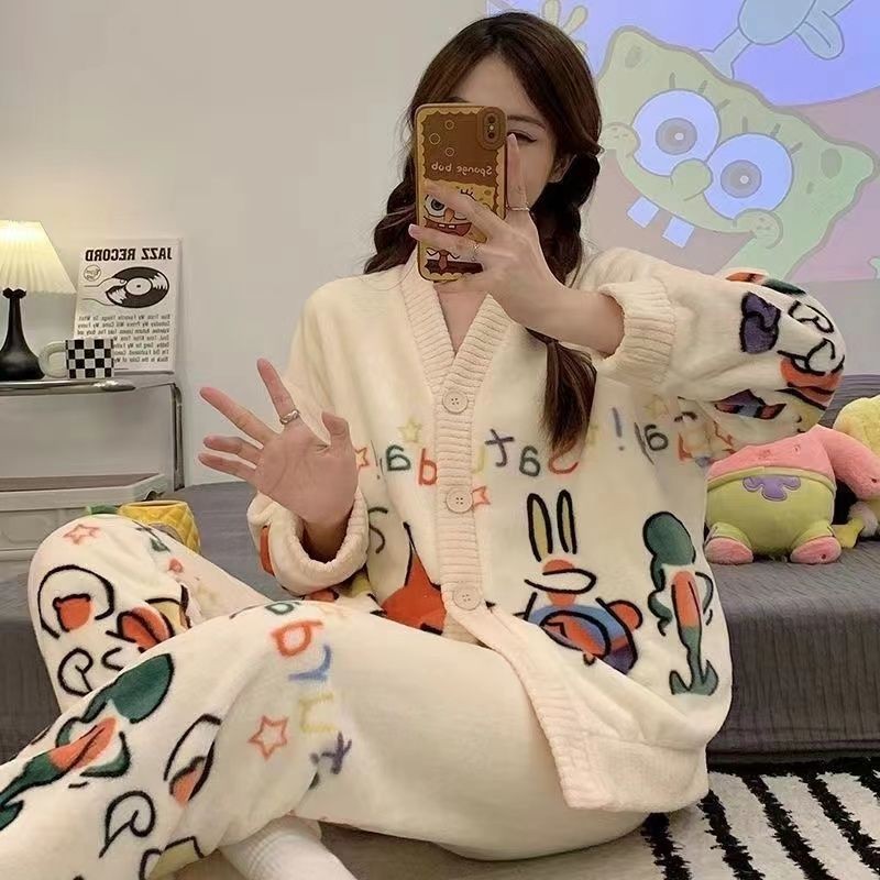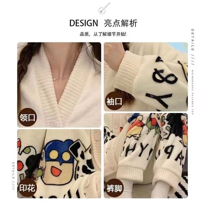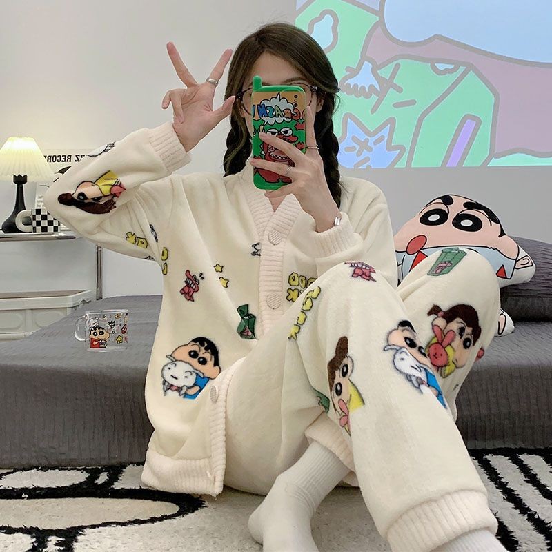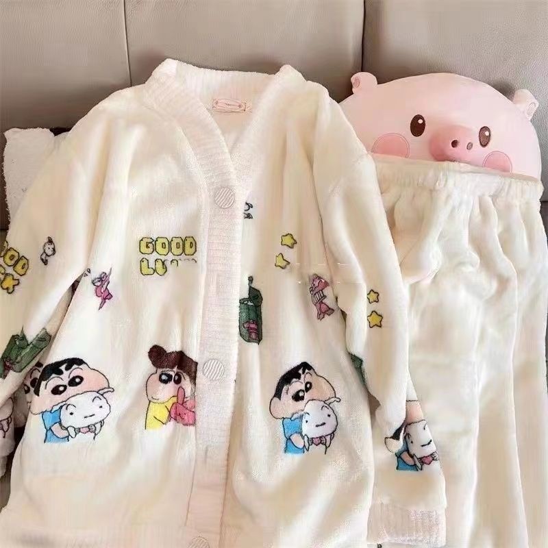[JTZ] ชุดนอนกางเกงขายาวแขนยาวขนแกะปะการังอุ่นเครยอนชินจัง