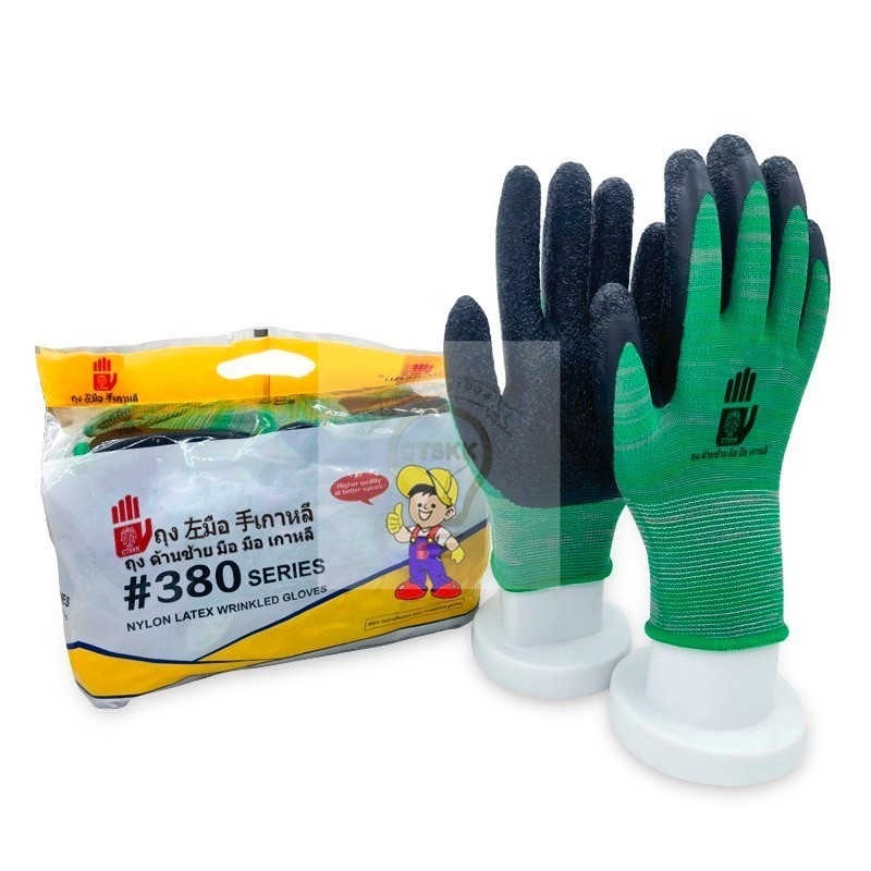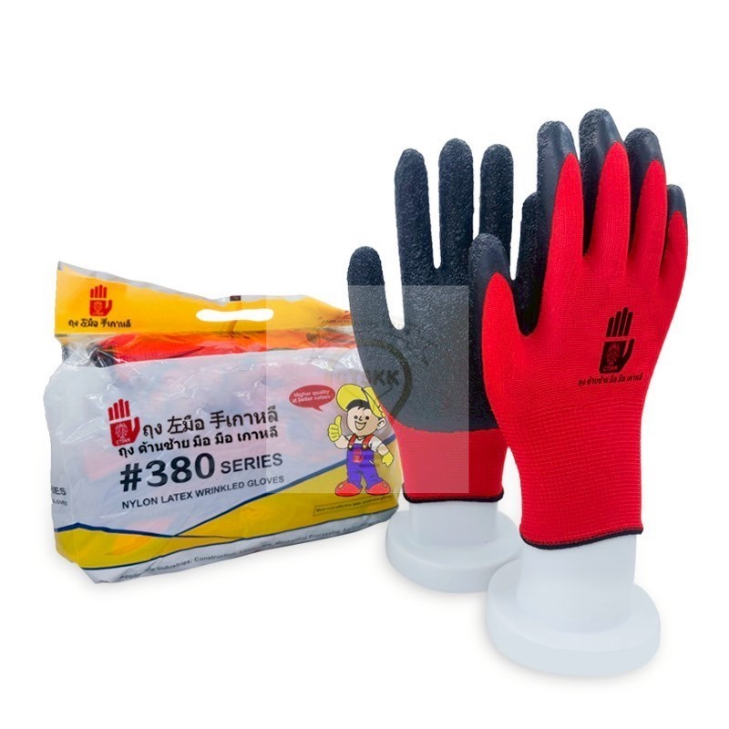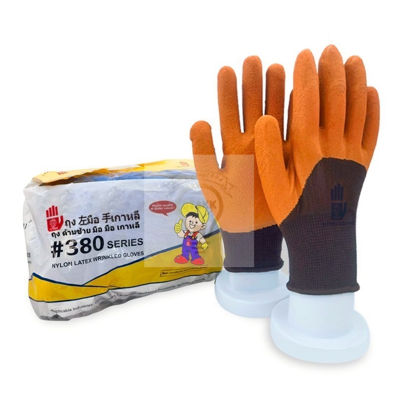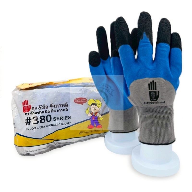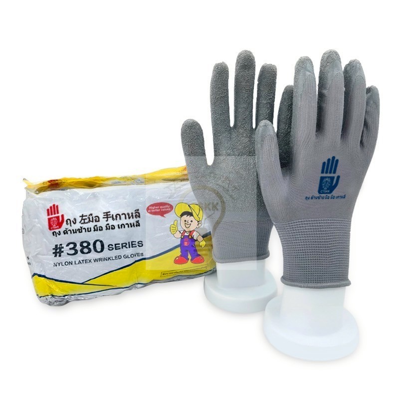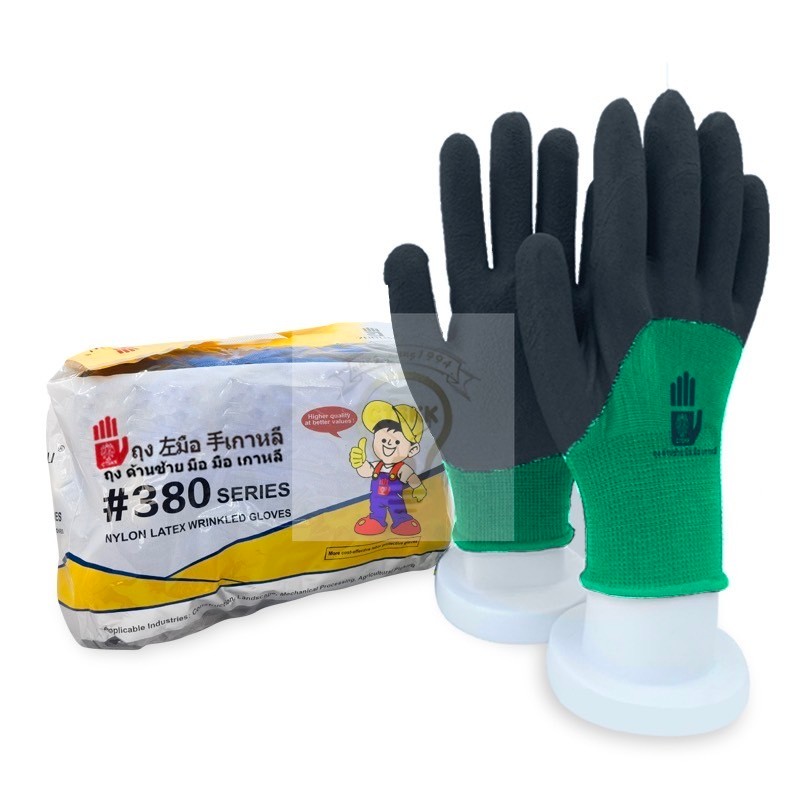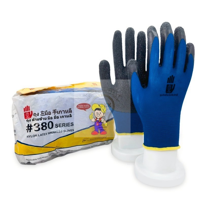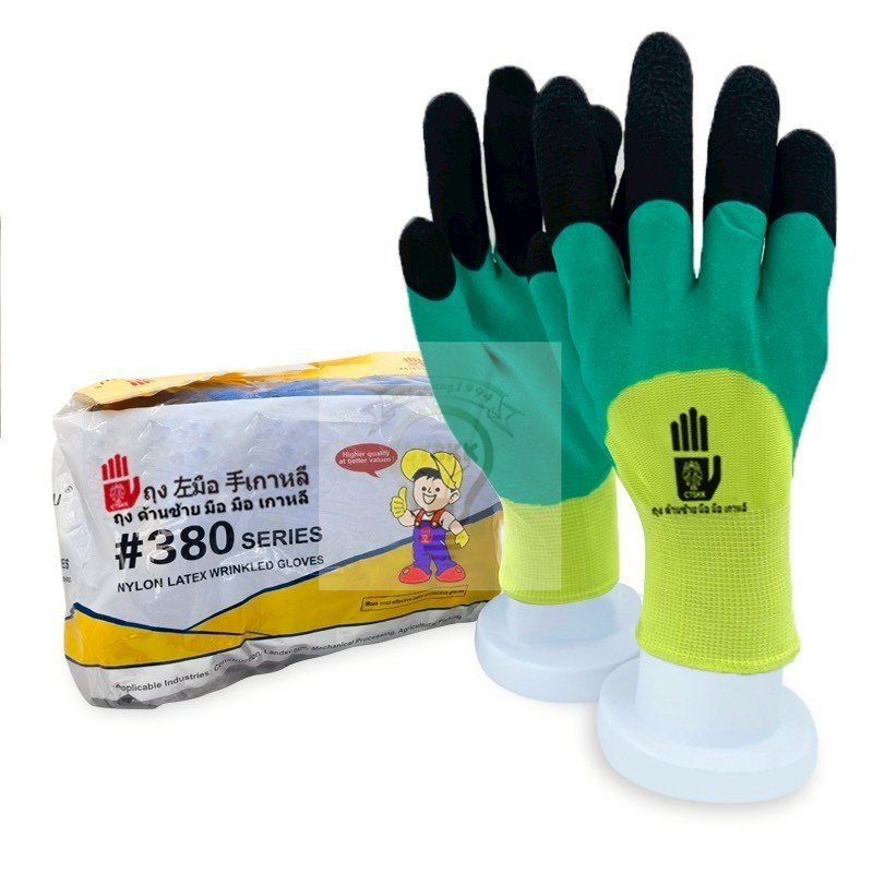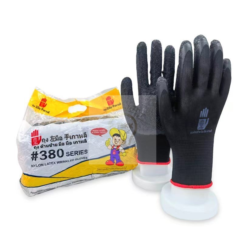 1คู่ถุงมือเคลือบยางถุงมือผ้าไนล่อนกันลื่นระบายอากาศได้ดี งานคลังสินค้า งานก่อสร้าง