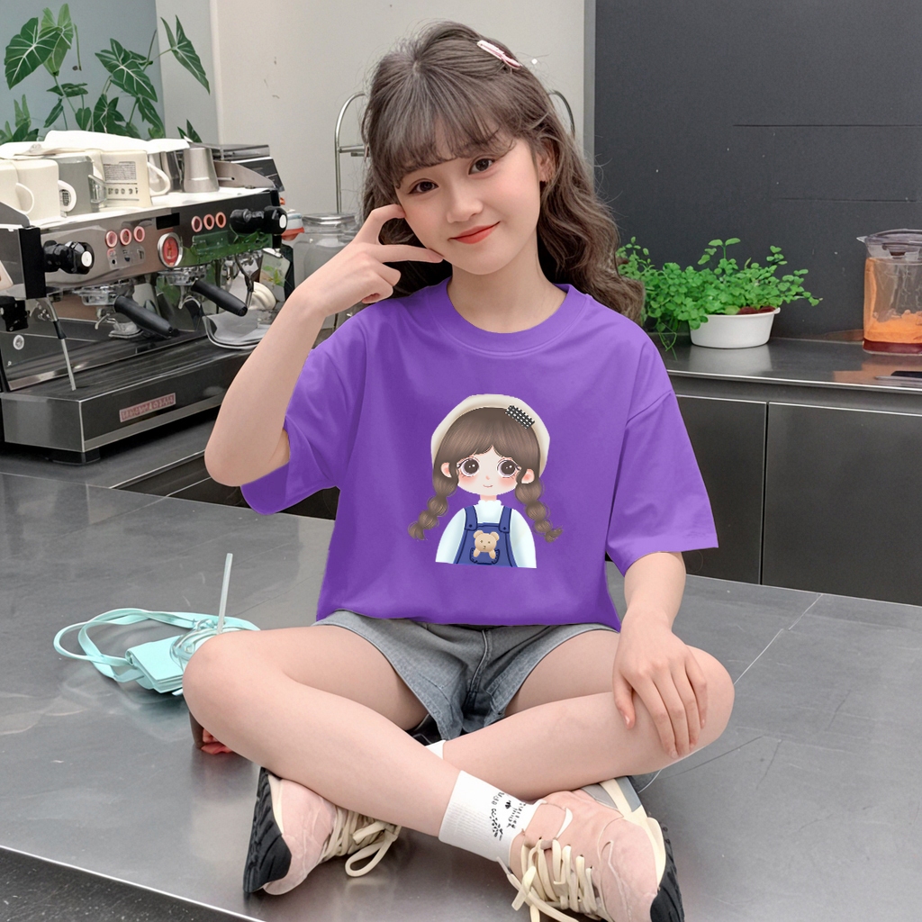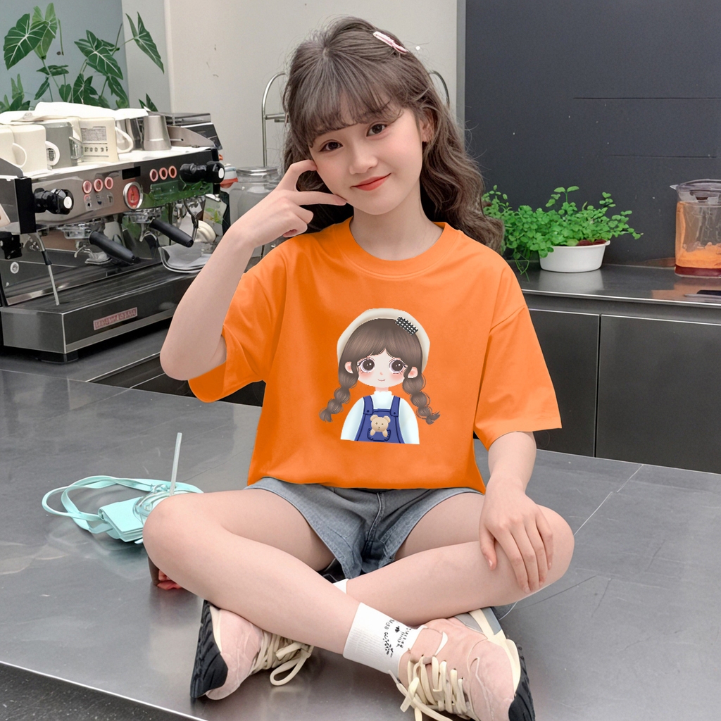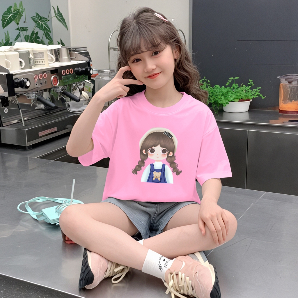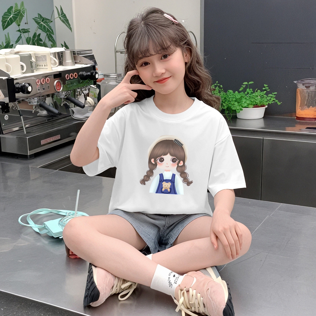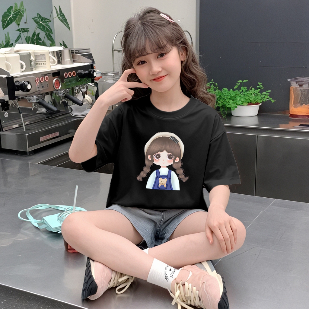 Yout-children เสื้อเด็ก เสื้อคอกลม วินเทจ แขนสั้น t shirt ใส่สบาย ฤดูร้อน 'GIRL BEAR'