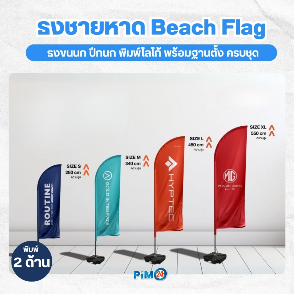 ธงชายหาด Beach Flag พิมพ์ 2 ด้าน! รุ่นอลูมิเนียม พร้อมฐานตั้ง ครบชุด พร้อมพิมพ์ 2 ด้าน ธงปีกนก