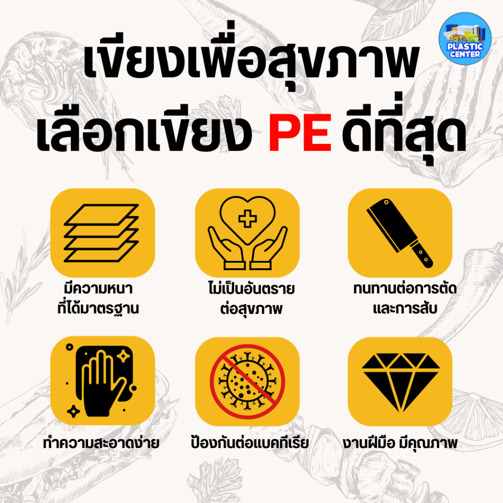 เขียงพลาสติก สำหรับร้านอาหาร เขียงพลาสติกอุตสาหกรรม หนา 2-3 ซม สำหรับร้านอาหาร กัดลายกันลื่นทั้ง 2 ด้าน หนา พร้อมส่ง