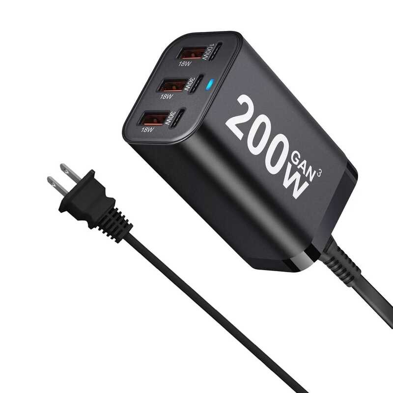 ▥ 200W 6 พอร์ต USB C CHARGING Fast GAN Charger Power Adapter สําหรับ Iphone 14/13/12 Series Sam