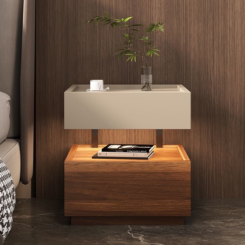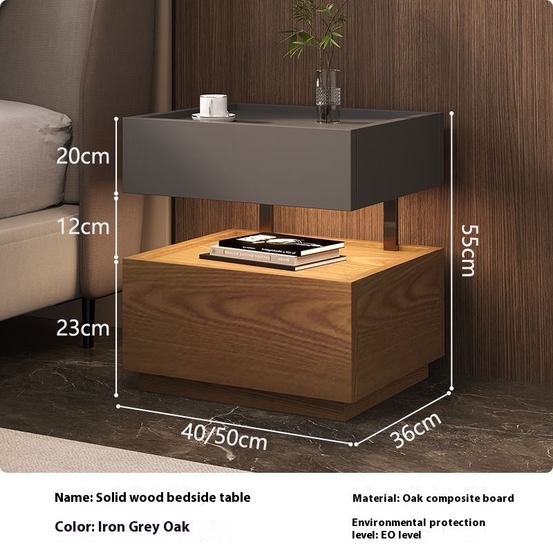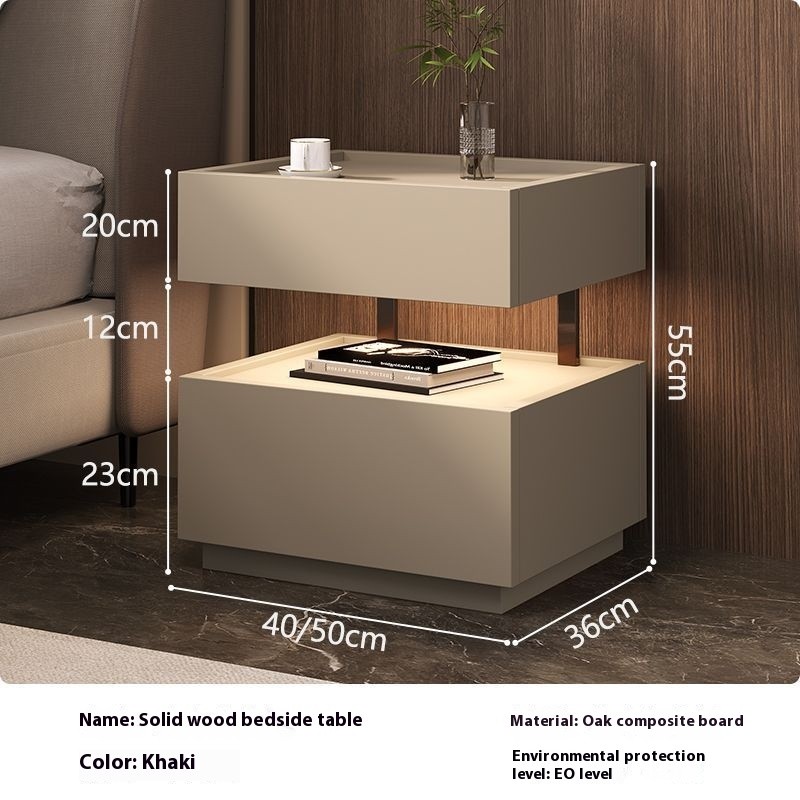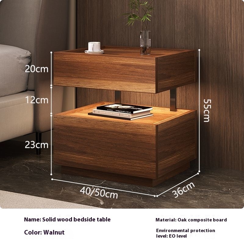 โต๊ะข้างเตียงสไตล์มินิมอล ตู้ข้างเตียงไม้เนื้อแข็งสมัยใหม่พร้อมไฟเซ็นเซอร์อัตโนมัติ ตู้เก็บของในห้องนอน มีหลายสีให้เลือก