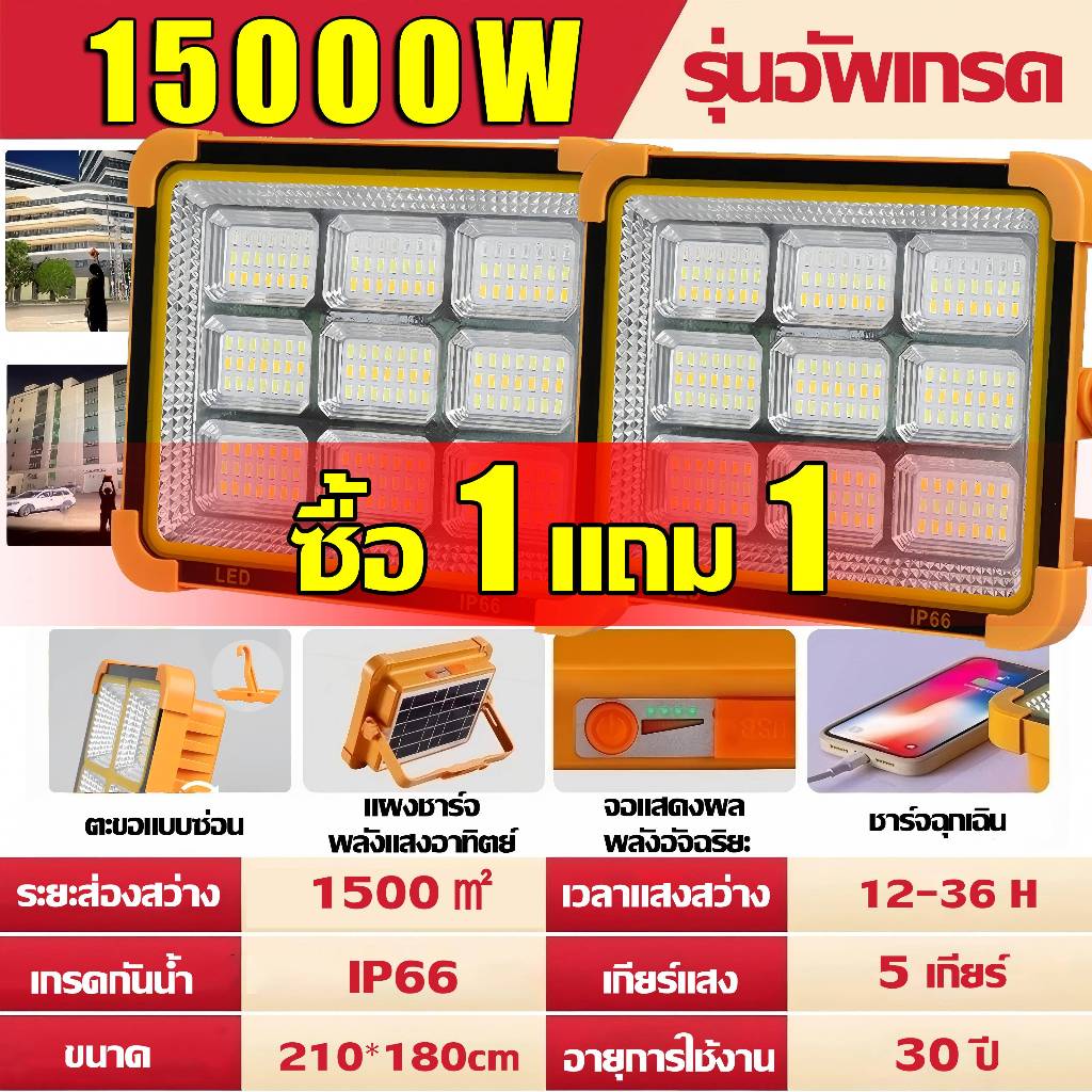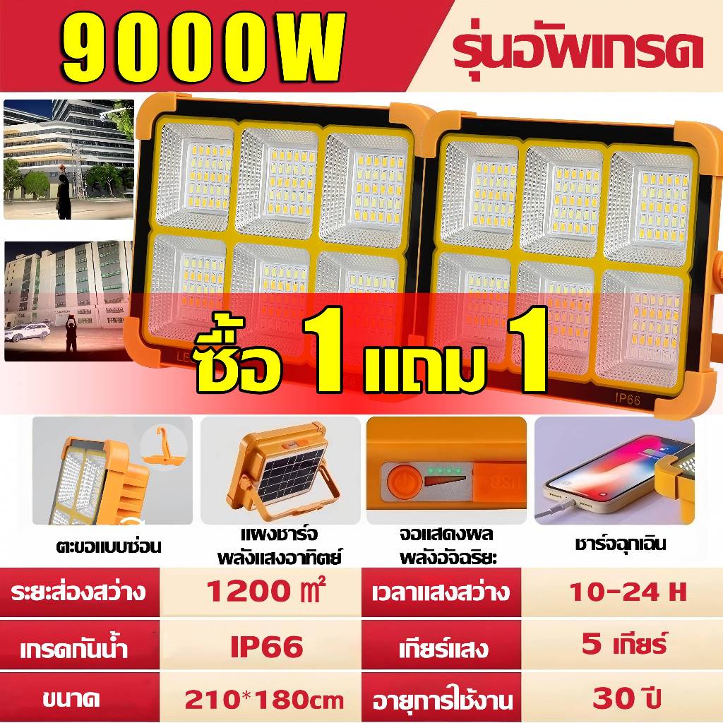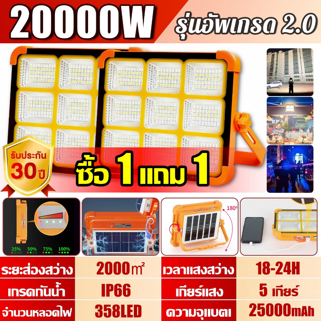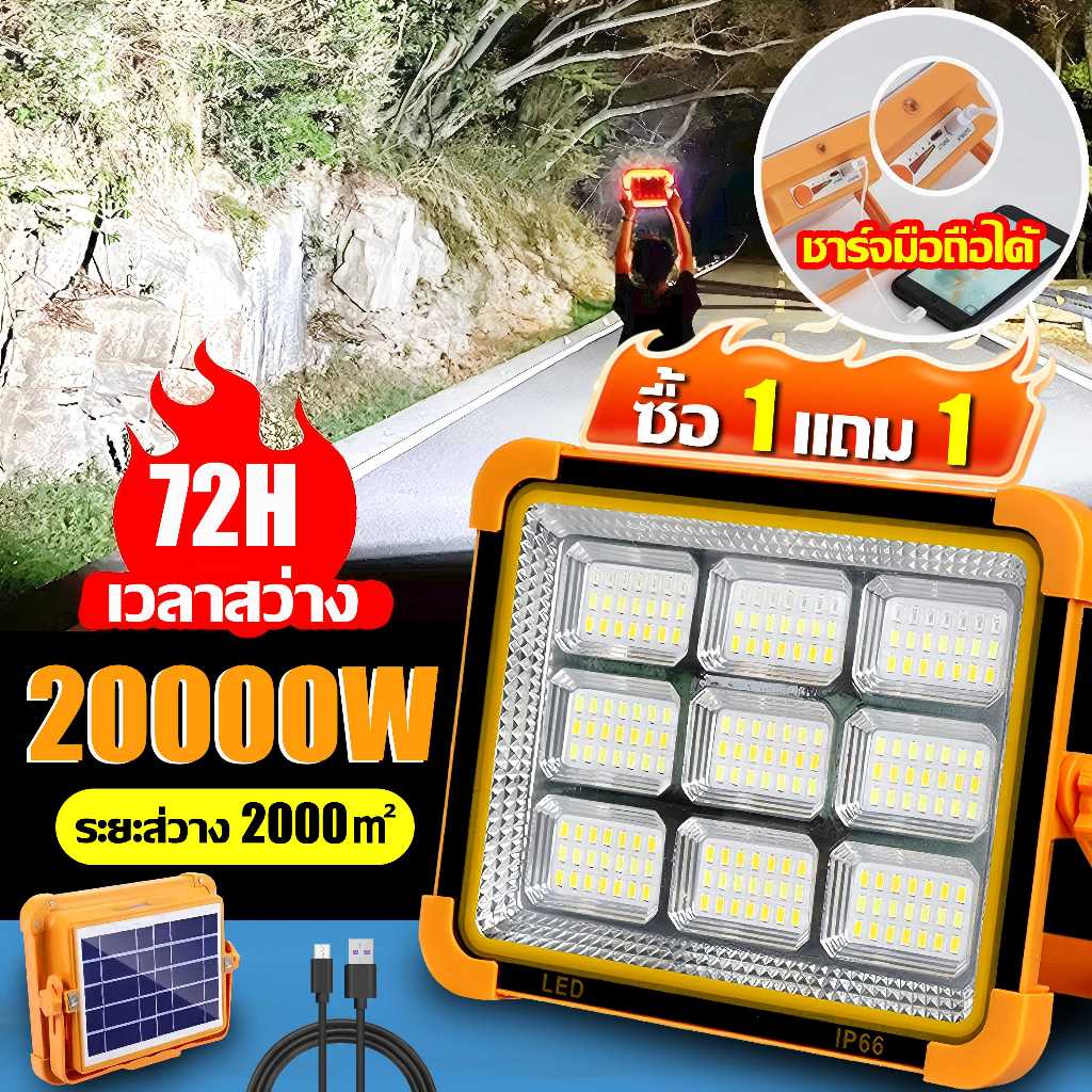 💡รับประกัน30ปี💡ไฟโซล่าเซลล์ 20000W โซล่าเซลล์ สปอตไลท์พกพา ไฟฉุกเฉิน ไฟโซล่าเซล หรี่แสง4เกียร์ + ไฟเตือน Solar Light
