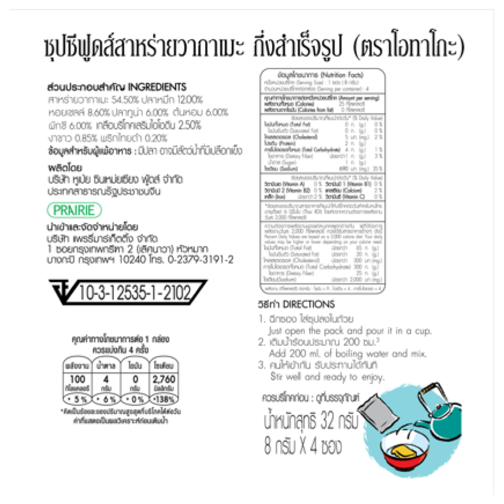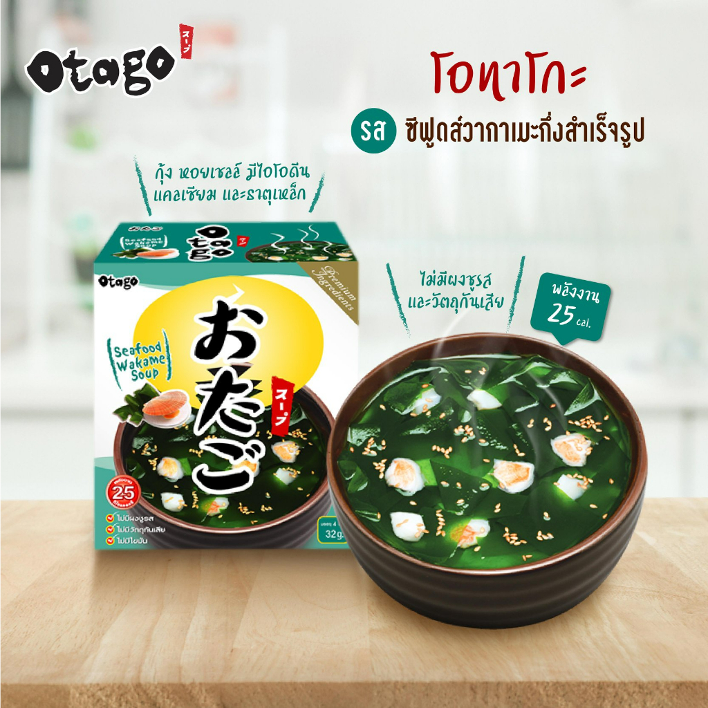 (ยกลัง)โอทาโกะ ซุปซีฟู๊ดวากาเมะ สูตรแคลต่ำ 32 กรัม - 12 กล่อง / Otago Seafood Wakame Soup 32 g. 1 Box (12 Box.)