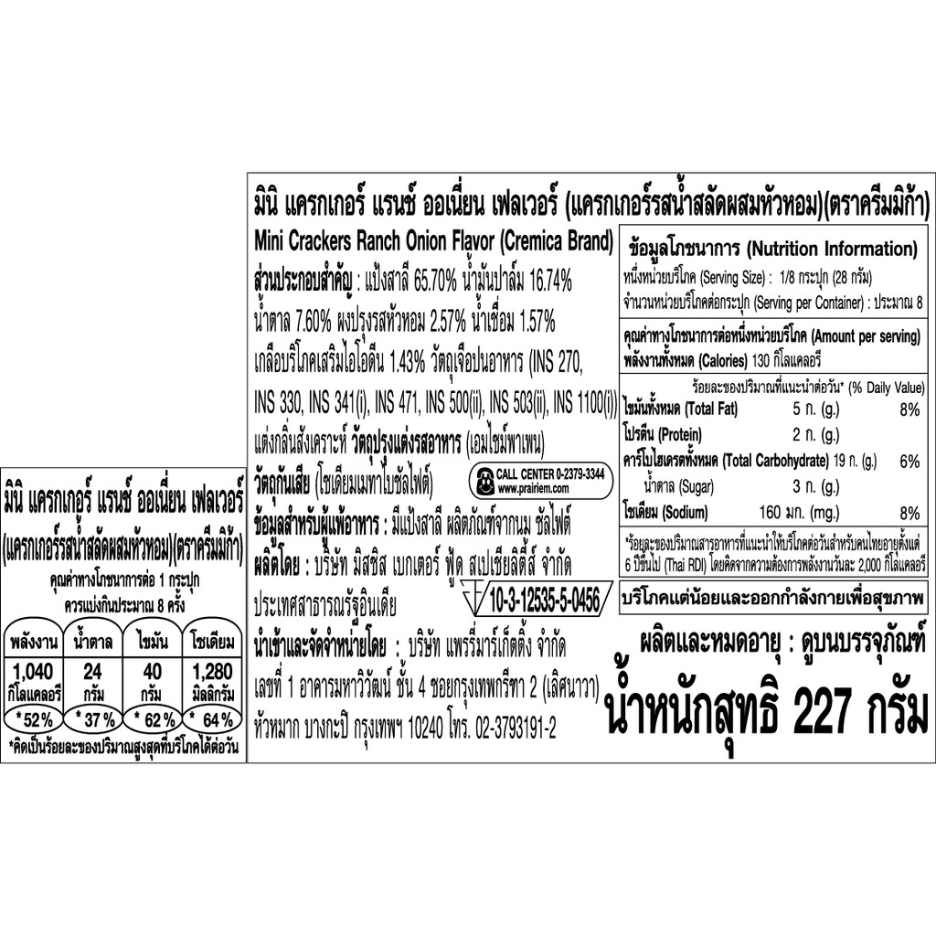 ครีมมิก้า มินิ แครกเกอร์ แรนซ์ออเนี่ยนเฟลเวอร์ 227 กรัม / Cremica Mini Crackers Ranch Onion flavor
