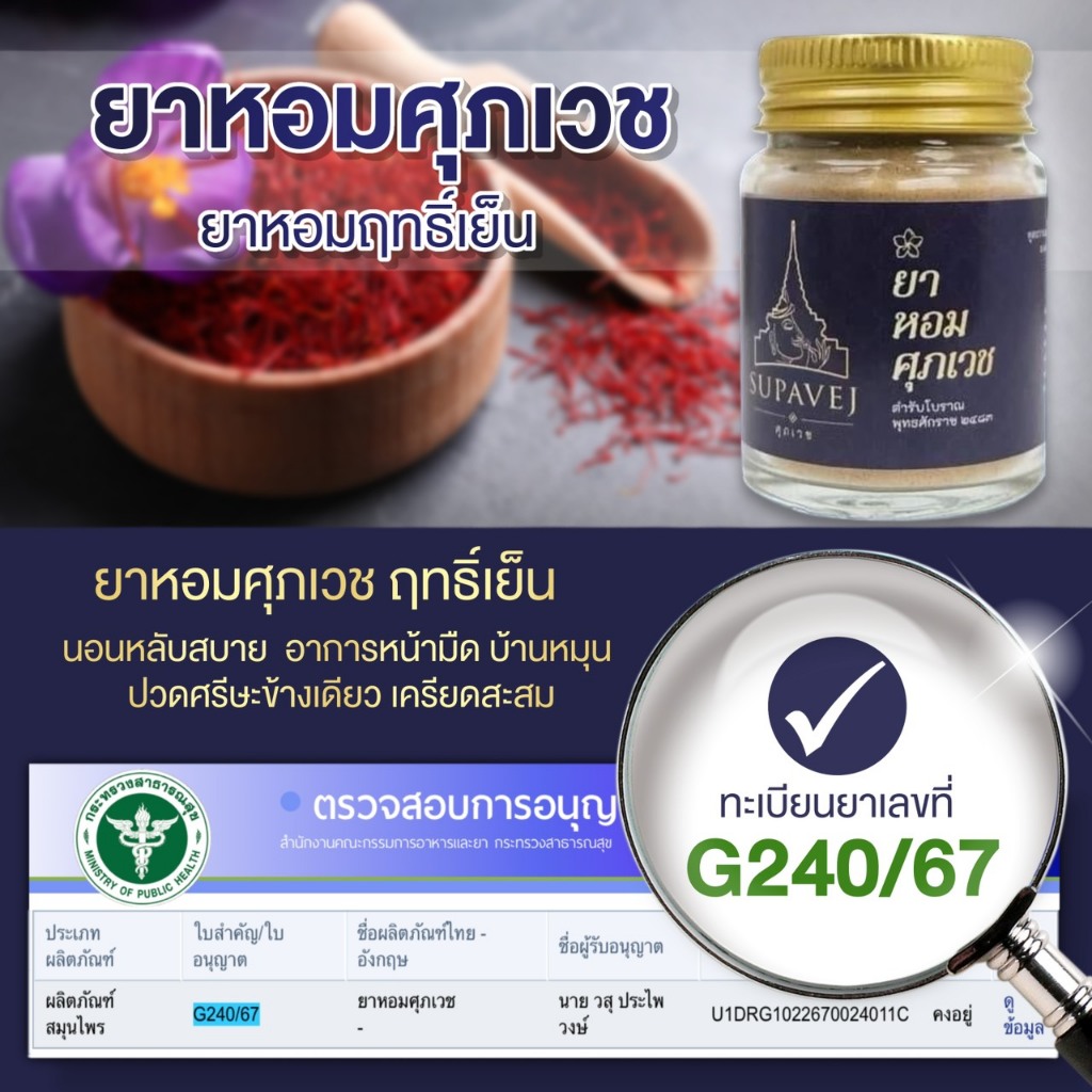 ยาหอม ศุภเวช วิงเวียน ปวดหัว ไมเกรน ศุภเวช ผลิตภัณฑ์สมุนไพร by หมอศุภ 20 กรัม