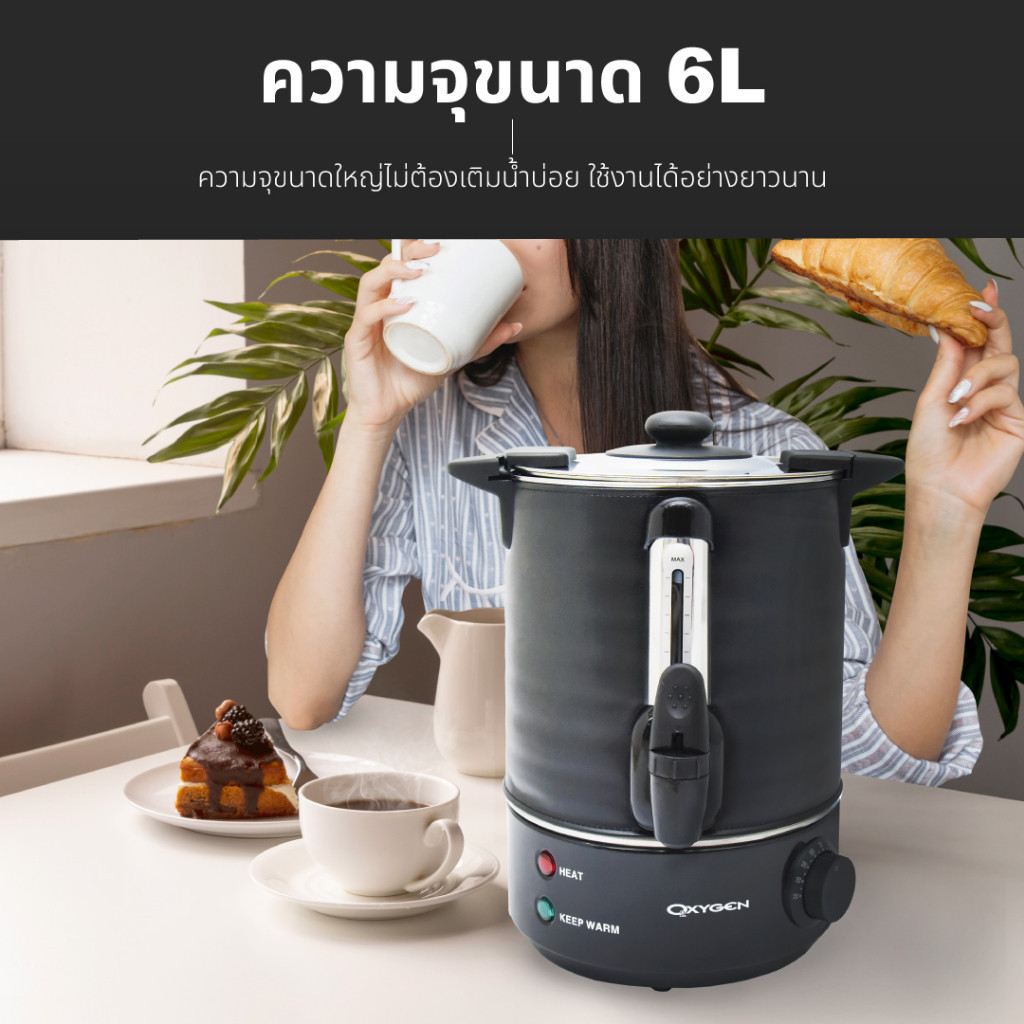 OXYGEN รุ่น YL-06L ถังน้ำร้อน ถังน้ำร้อนไฟฟ้า พร้อมหนังหุ้มกันความ ร้อน 6 ลิตร กำลังไฟฟ้า 1600 วัตต์