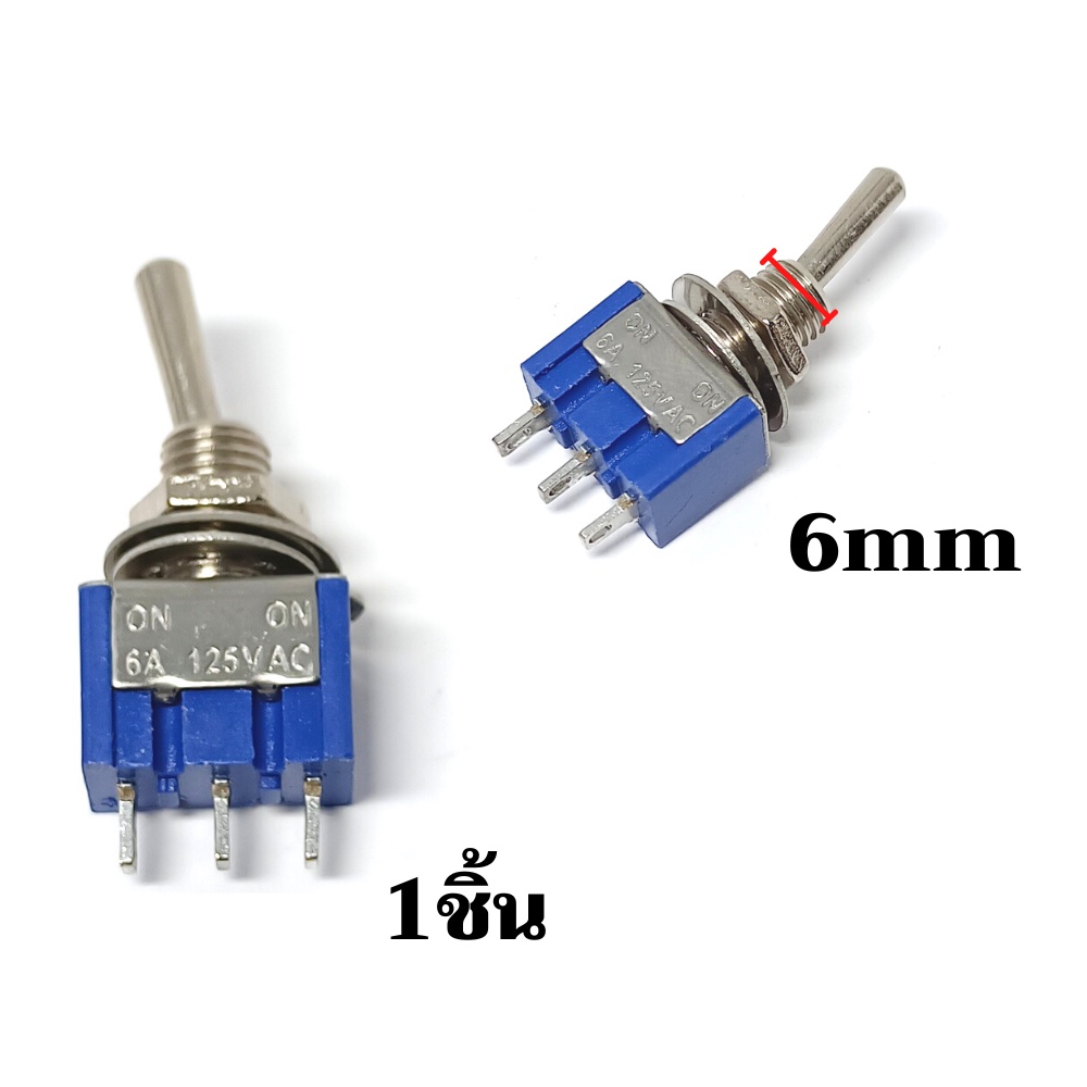 สวิทช์คันโยก 2 ทาง รูยึด 6mm125v 6a สวิตซ์ คันโยก 12v จำนวน1ชิ้น