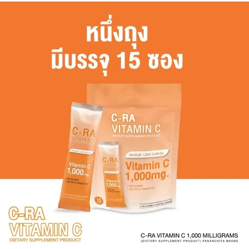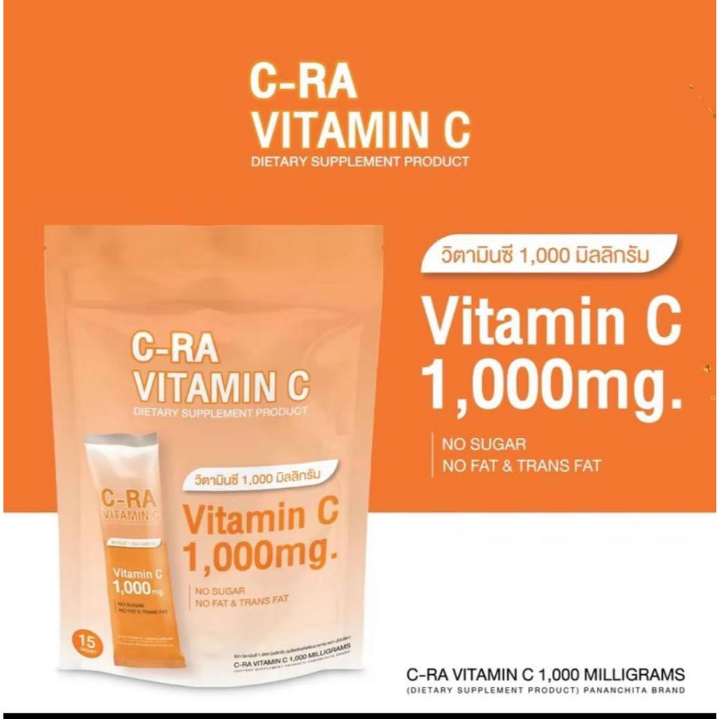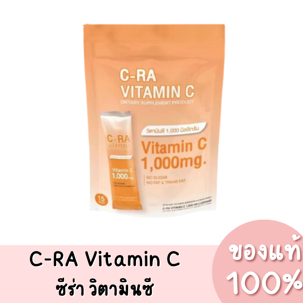 แท้💯 C-RA Vitamin C ซีร่า วิตามินซี 1,000 มิลลิกรัม วิตามินซีเบสคำสิงห์ (1 ถุง/15 ซอง)