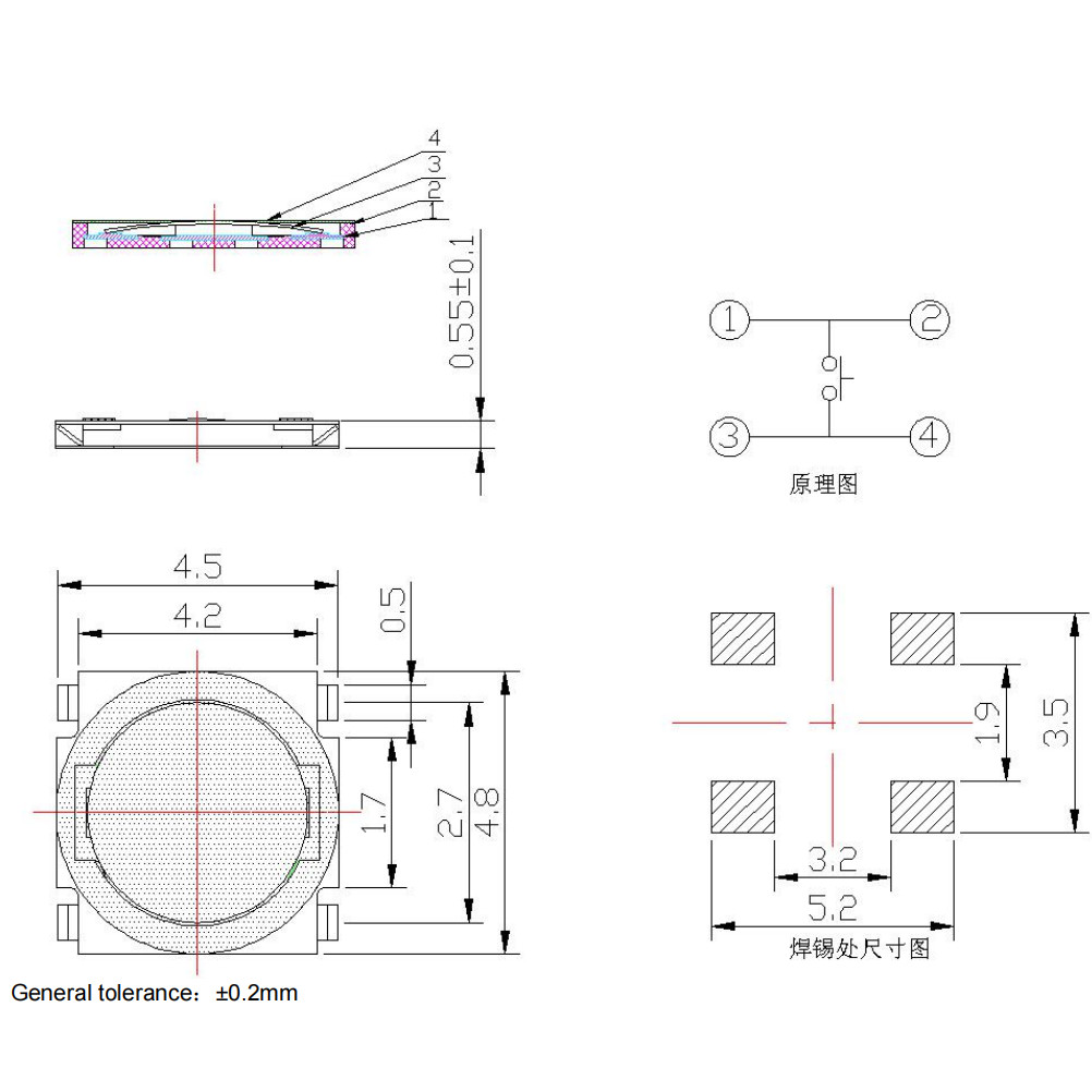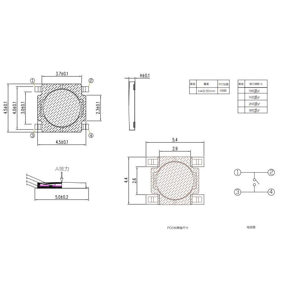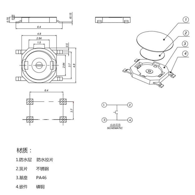 50ชิ้นเมมเบรนปุ่มสวิทช์4.8*4.8*0.55 3.7*3.7*0.35 SMD 4พี 3*3*0.8 4.5*4.5*0.55 4*4*0.8แพทช์ไมโครสัมผัสปุ่มสวิทช์