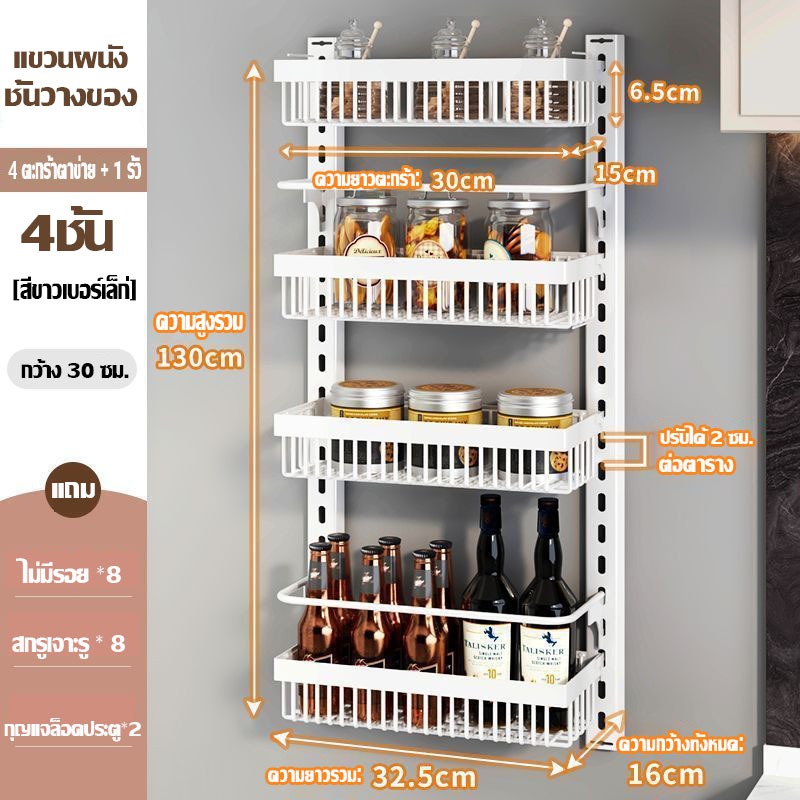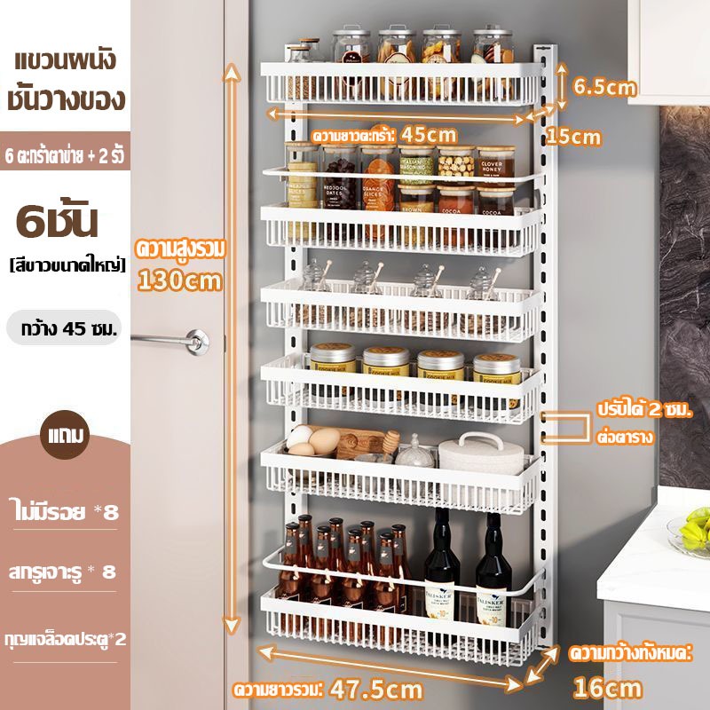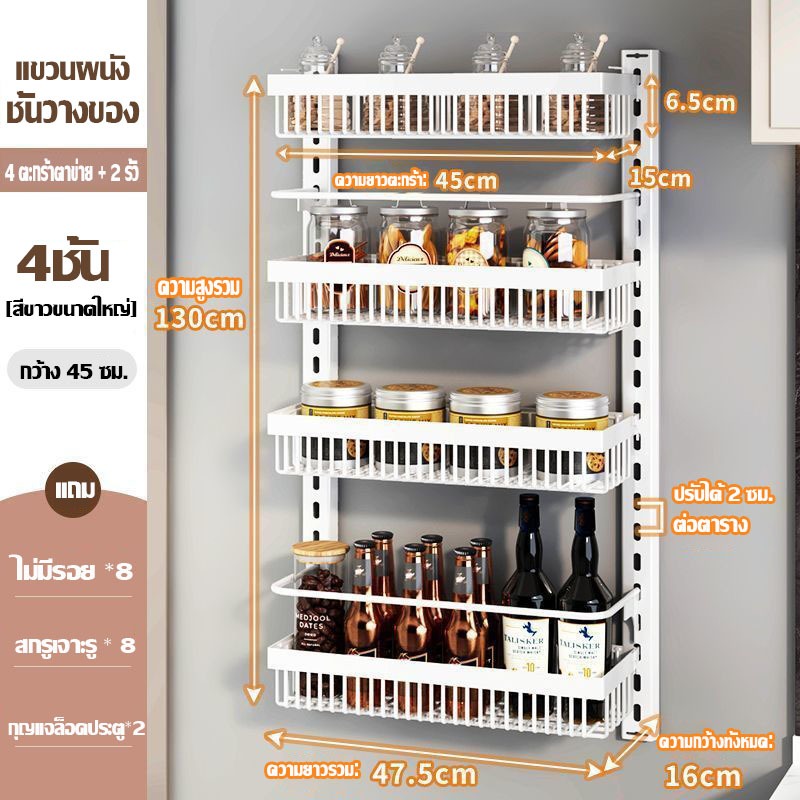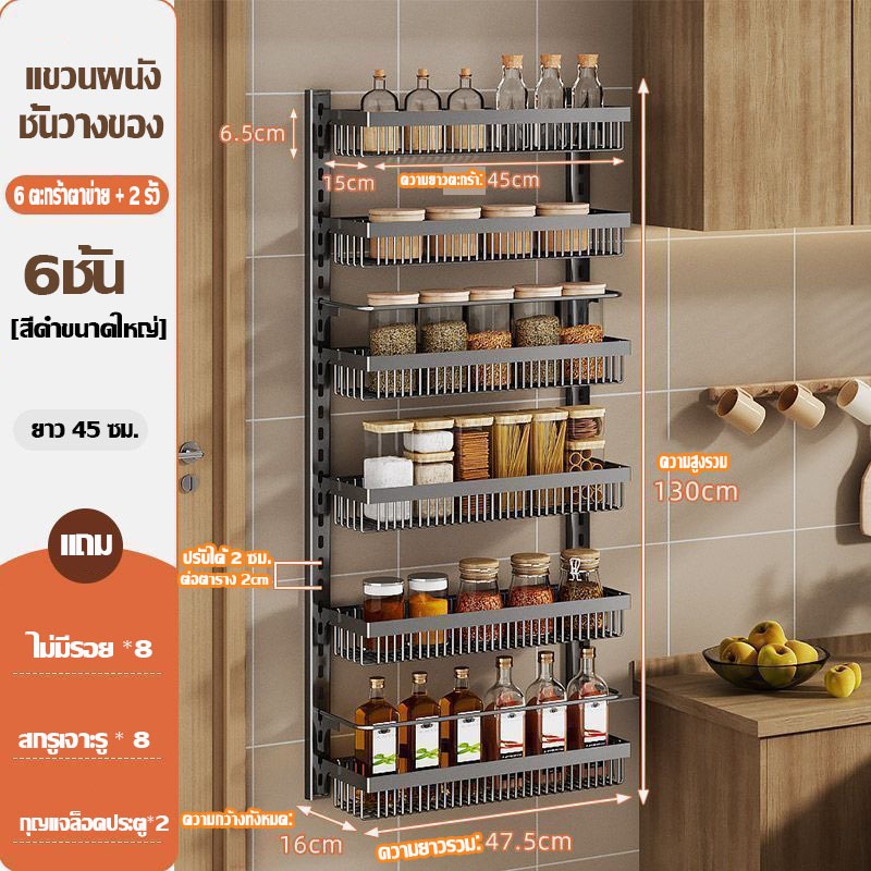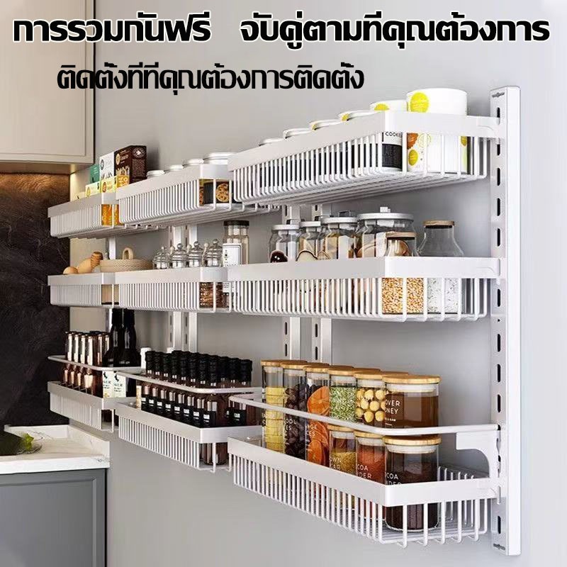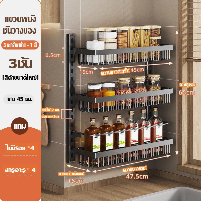 🔥รับประกัน 5ปี🔥 ชั้นวางเครื่องปรุงติดผนัง ชั้นวางของในครัว ชั้นวางเอนกประสงค์ การติดตั้งหลุมเจาะฟรีไม่ทำร้ายผนัง