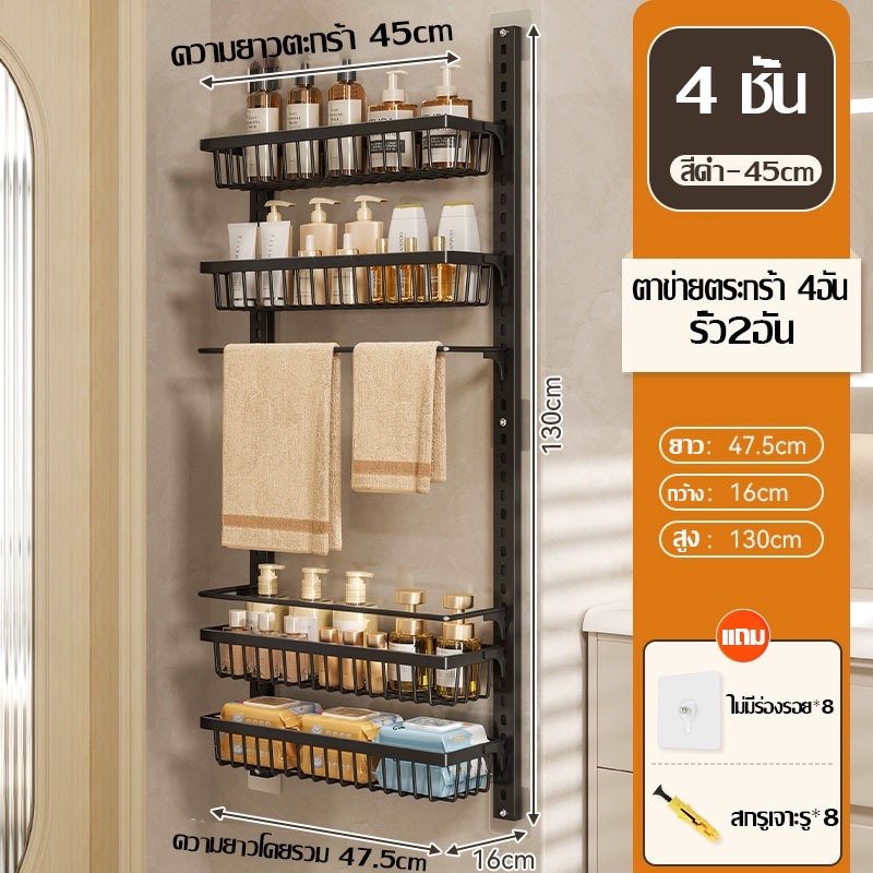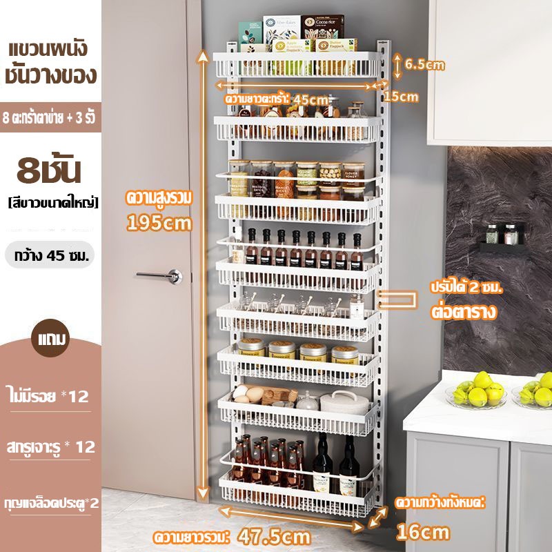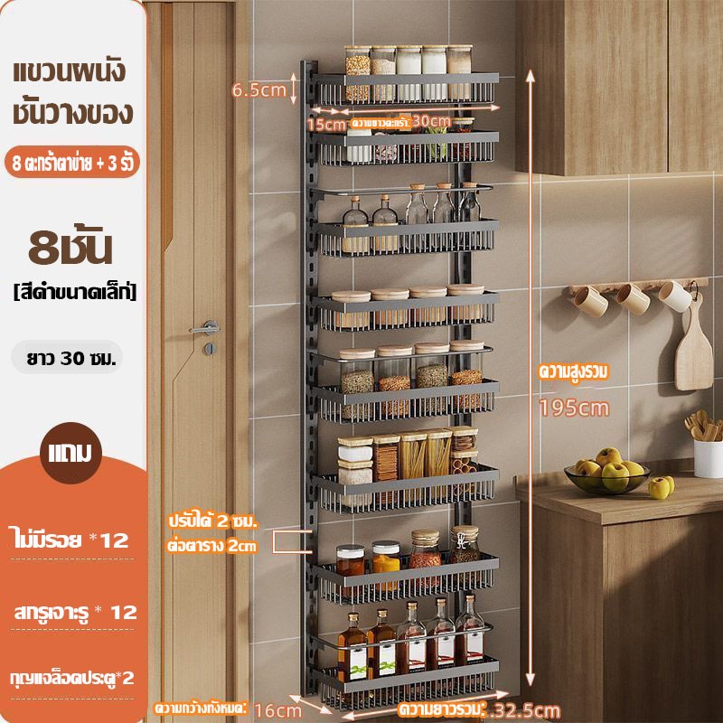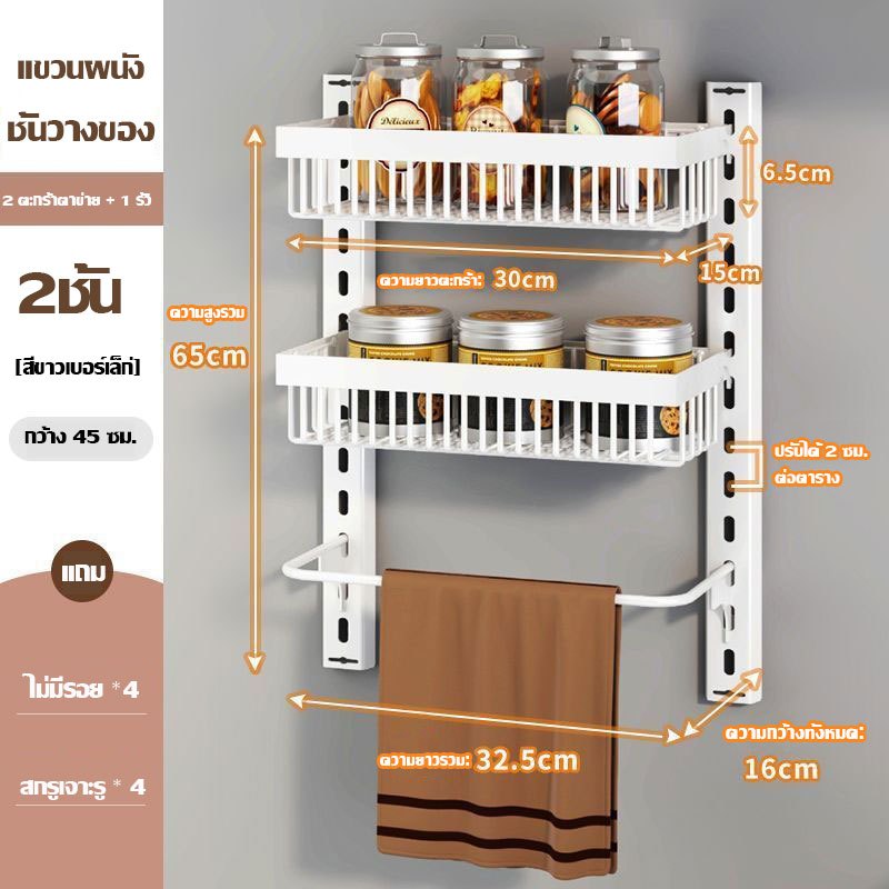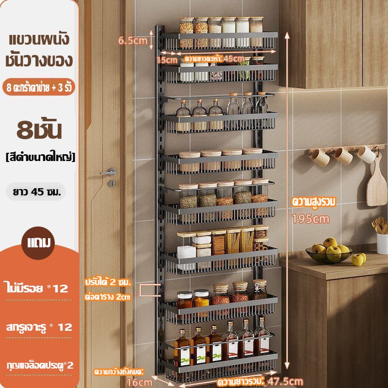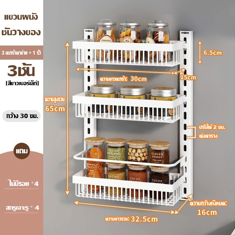 🔥รับประกัน 5ปี🔥 ชั้นวางเครื่องปรุงติดผนัง ชั้นวางของในครัว ชั้นวางเอนกประสงค์ การติดตั้งหลุมเจาะฟรีไม่ทำร้ายผนัง