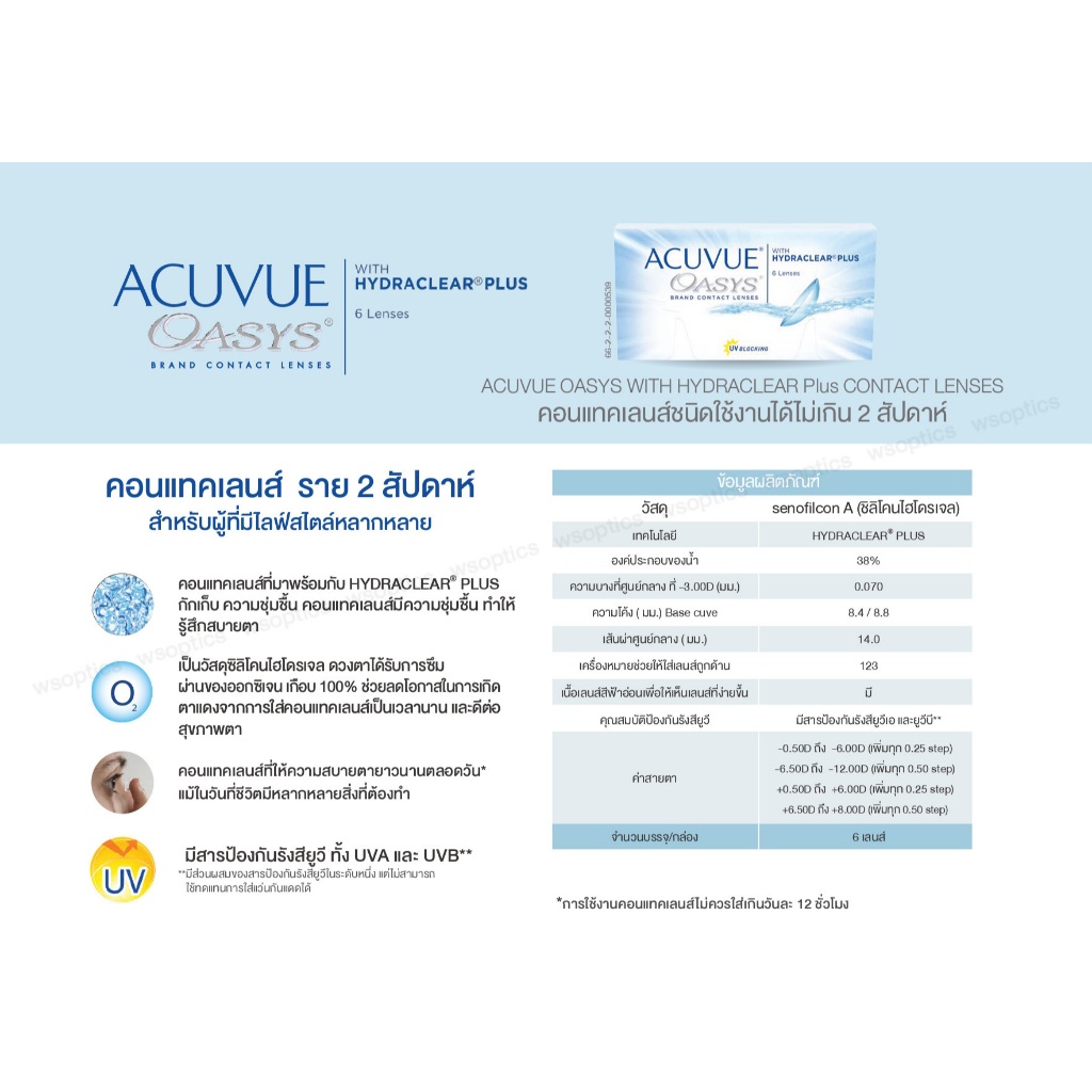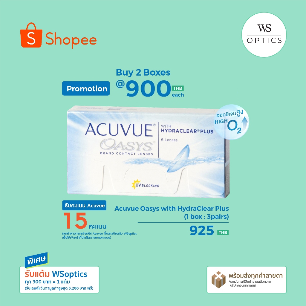 Acuvue Oasys คอนแทคเลนส์ราย 2 สัปดาห์ (1 Box : 3 Pairs)
