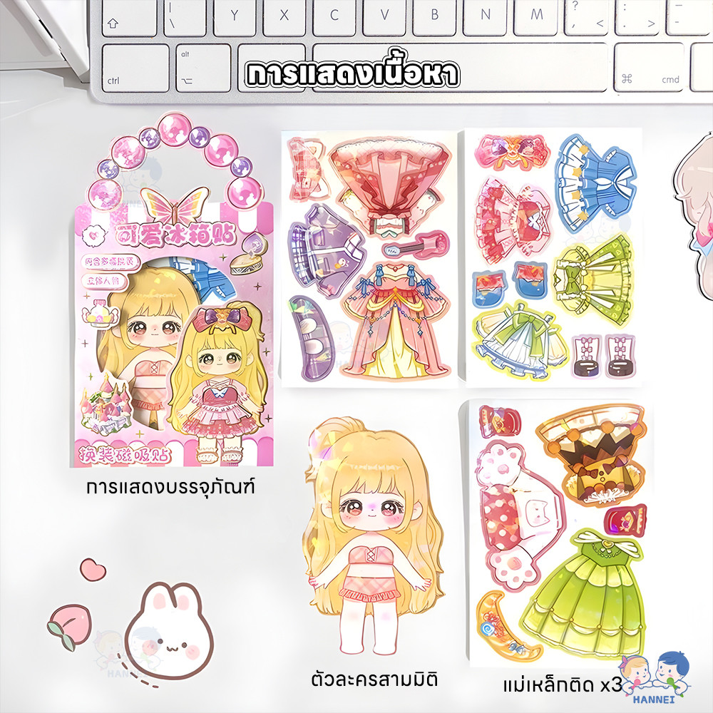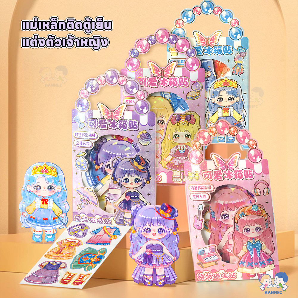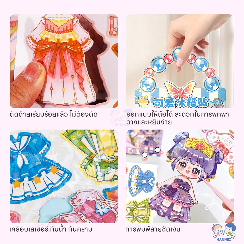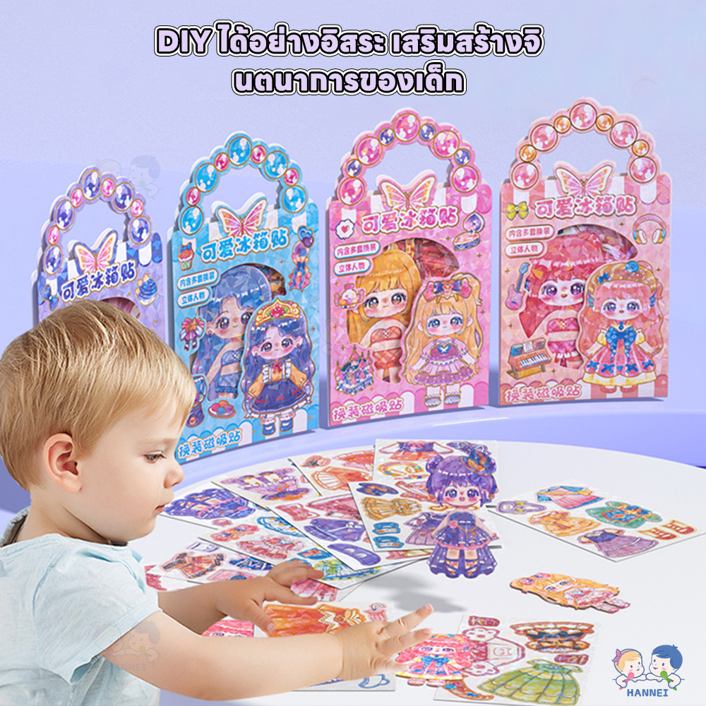 HANNEI หนังสือสติกเกอร์แม่เหล็ก แม่เหล็กแต่งตัวตุ๊กตา ตัดฟรี DIY ของเล่น diy สําหรับเด็ก busy book