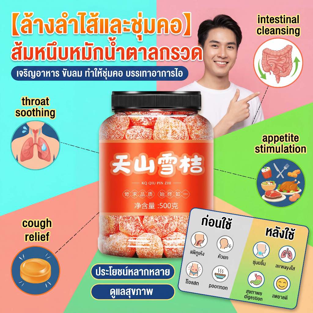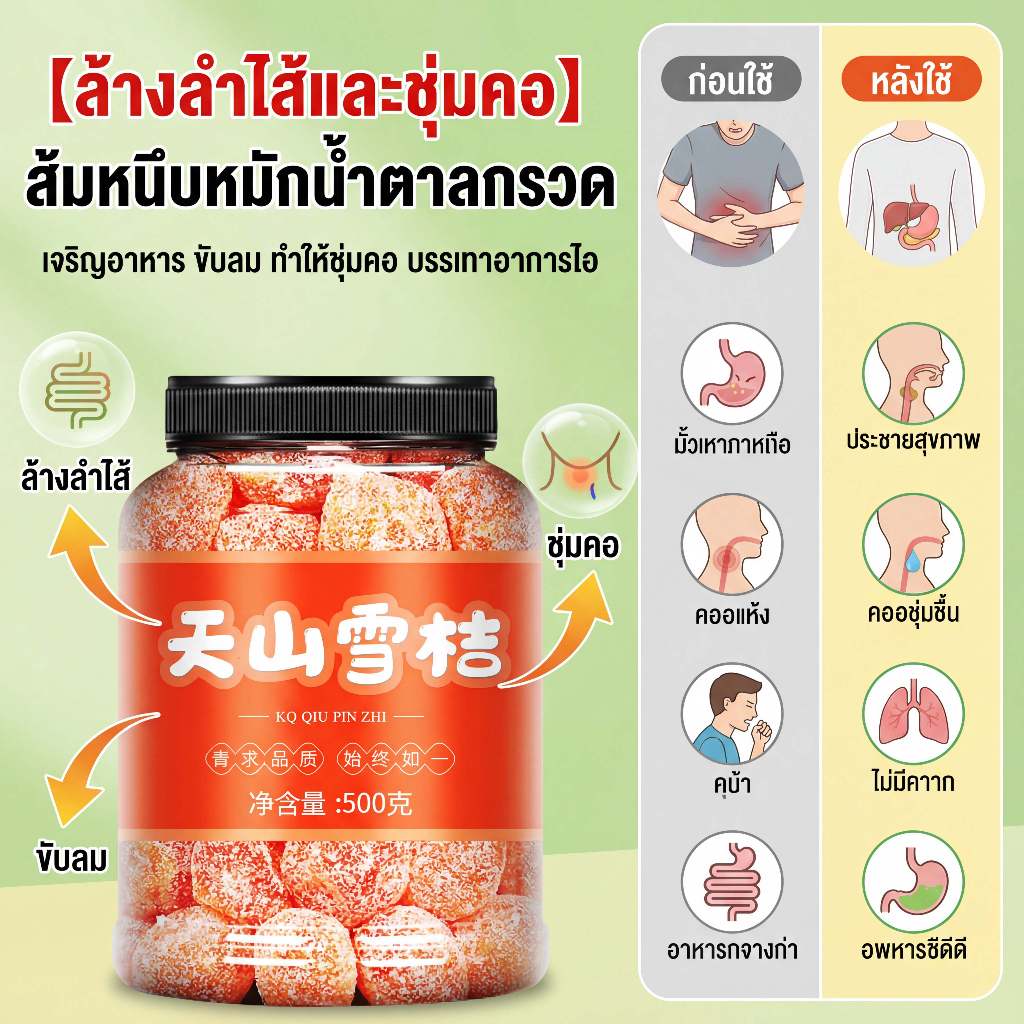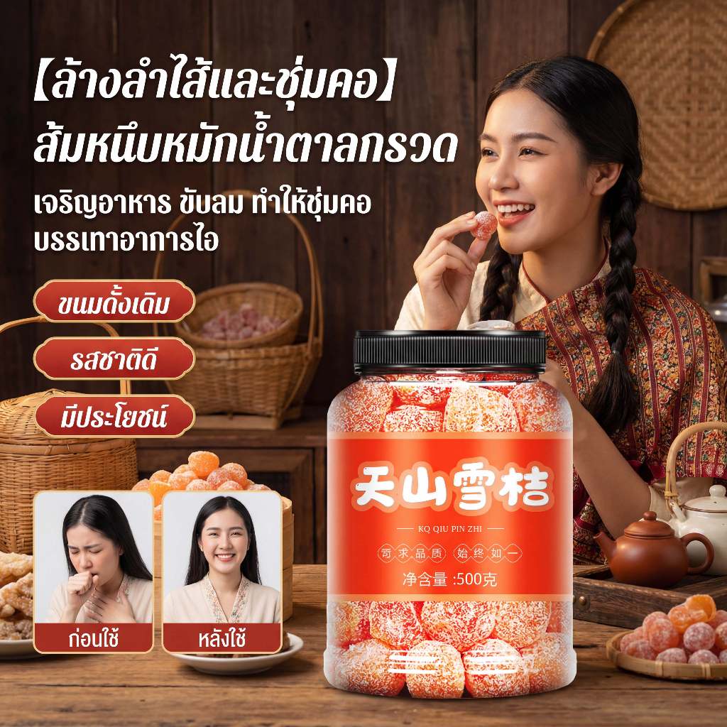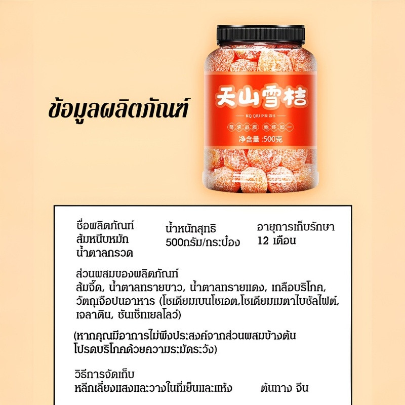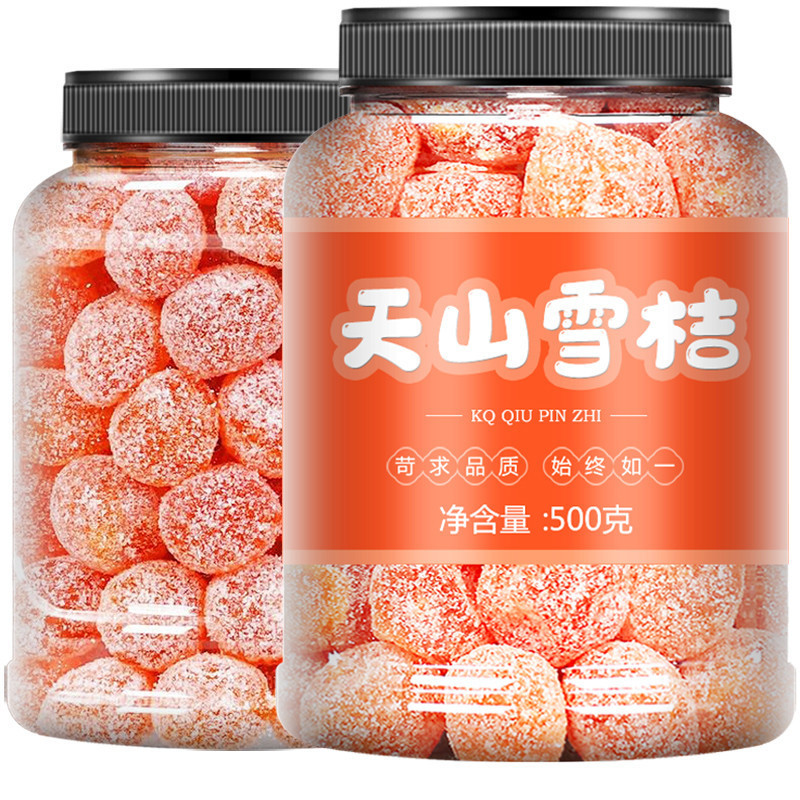 ส้มหิมะเทียนซานดีต่อสุขภาพ เจริญอาหาร ขับลม ทำให้ชุ่มคอ บรรเทาอาการไอ ส้มจี๊ดอบแห้งกับน้ําตาลกรวดขนมผลไม้หวาน เหมาะสำหรับทุกเพศทุกวัย 500g