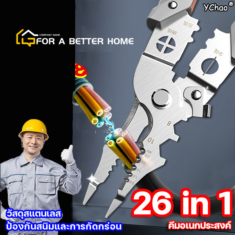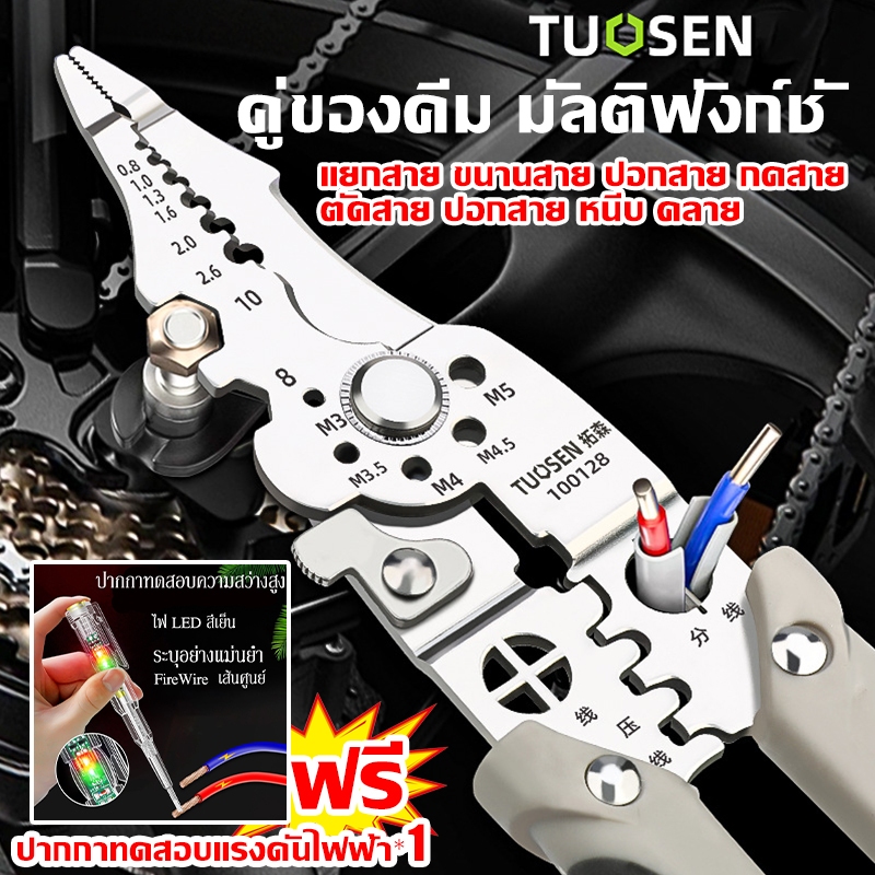 🔥รุ่นใหม่ล่าสุด🔥คีมปอกสายไฟ 21 in1 คีมตัดสายไฟ คีมช่างไฟฟ้า วัสดุสแตนเลส ตัดได้ทั้งสายอ่อนและสายแข็งคีม อเนกประสงค์ สามารถใช้เป็นประแจได้ด้วย ฟรีปากกาทดสอบแรงดันไฟฟ้า