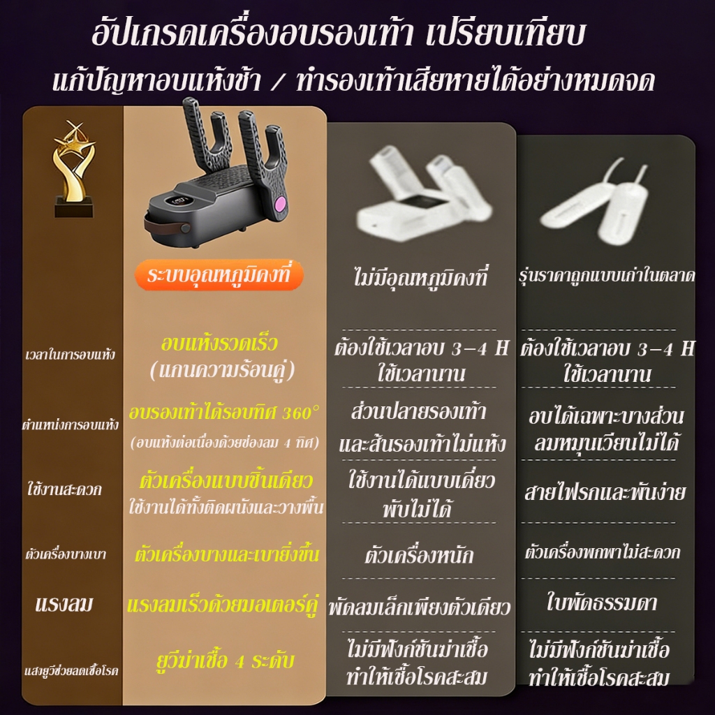 เครื่องเป่ารองเท้า แสงยูวีช่วยฆ่าเชื้อ ฆ่าเชื้อโรค 99.99% ฆ่าเชื้อ อบแห้ง ดับกลิ่น อบแห้งรวดเร็ว เครื่องอบรองเท้าแบบพกพา