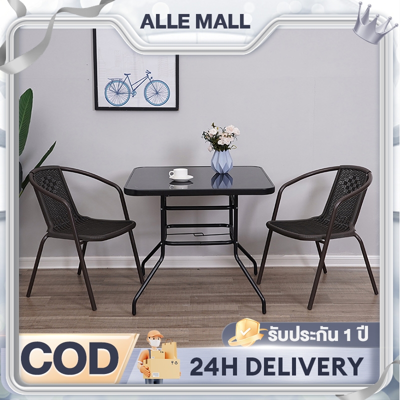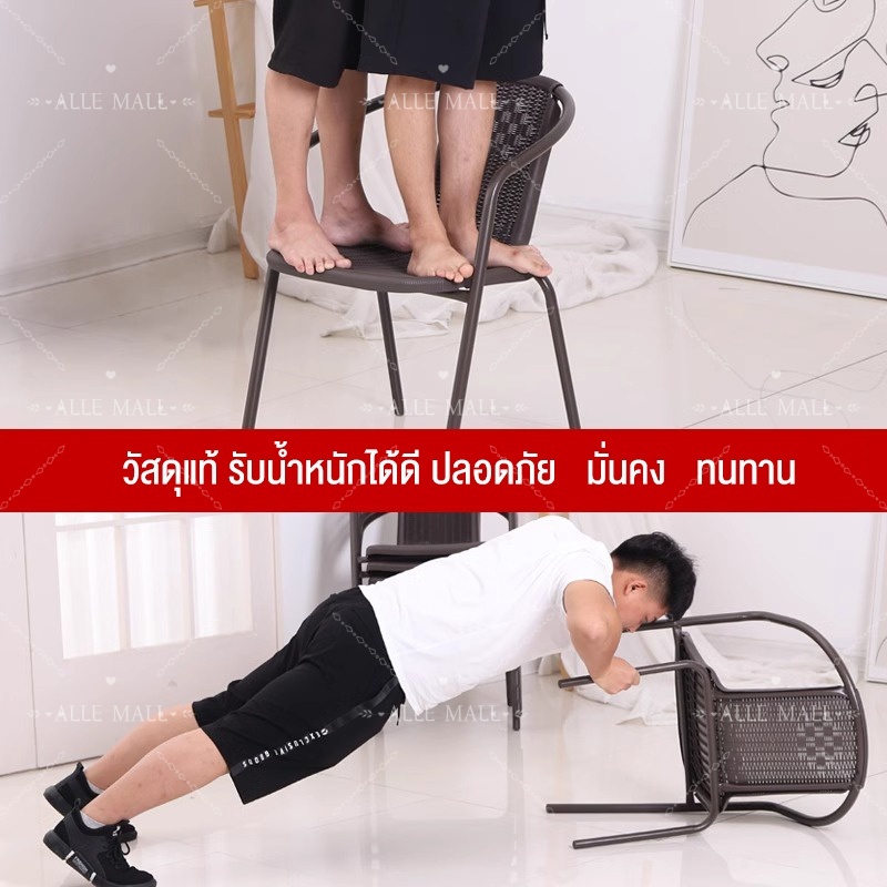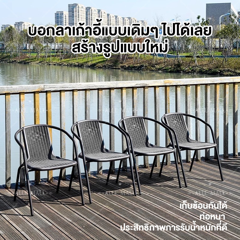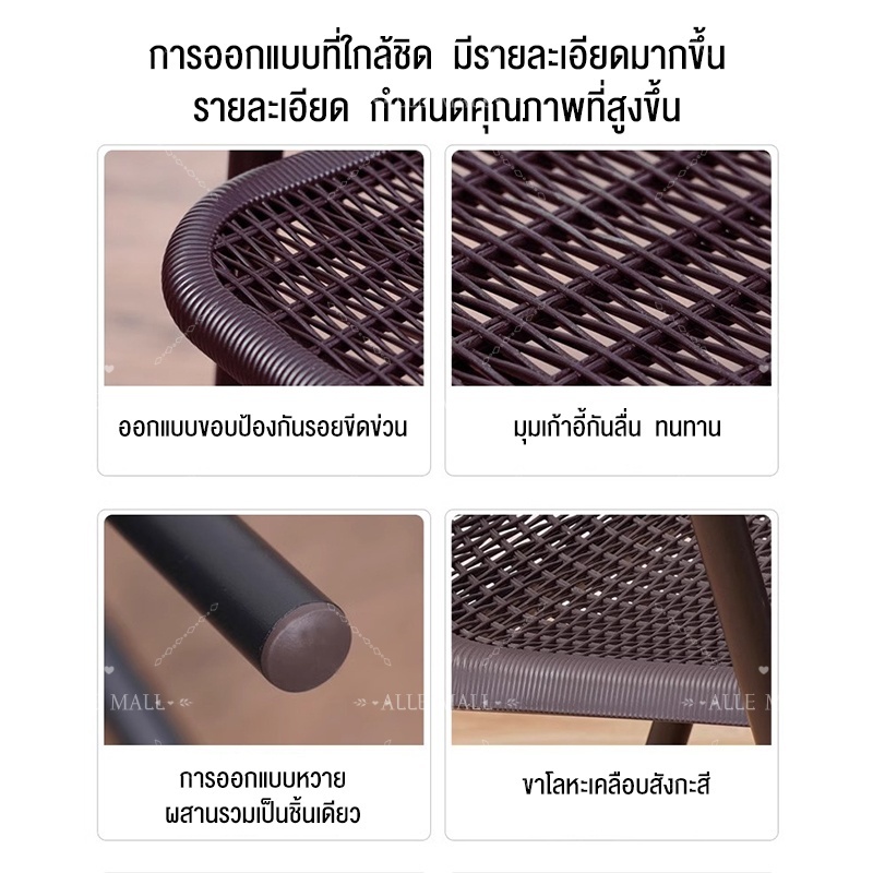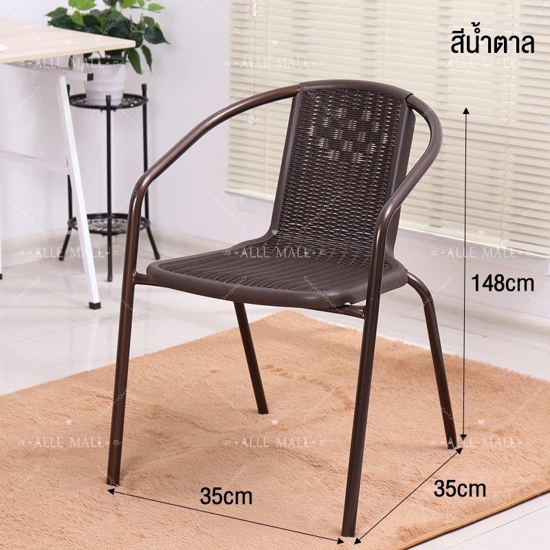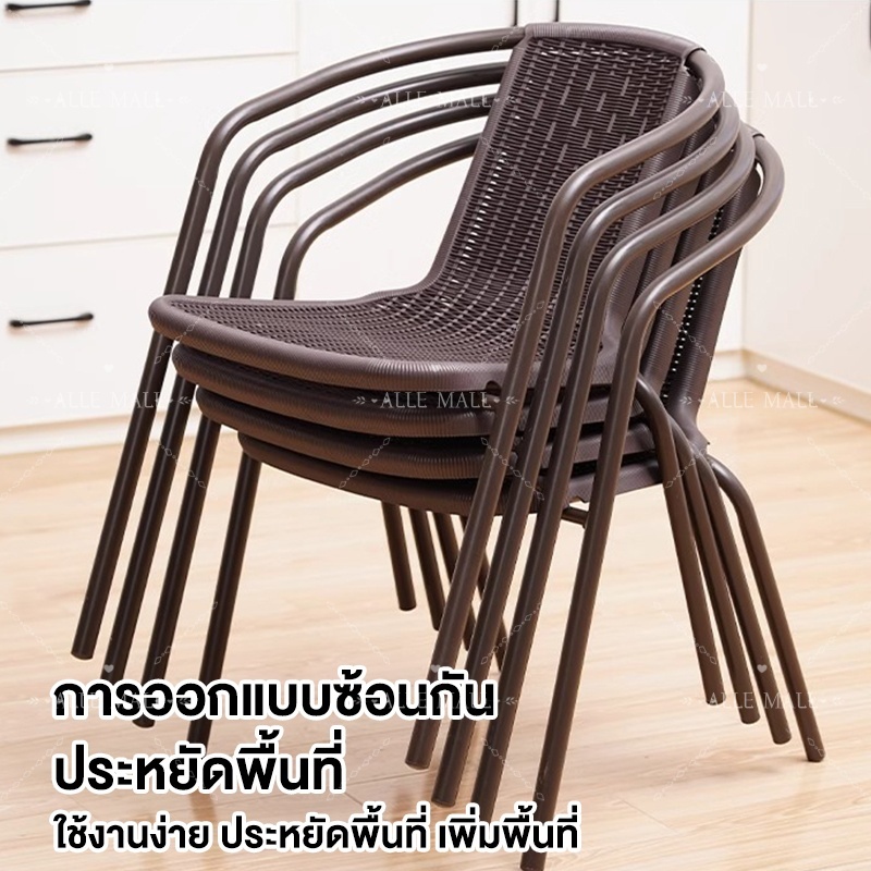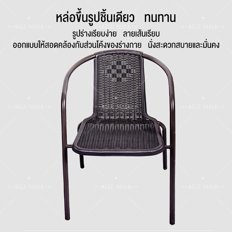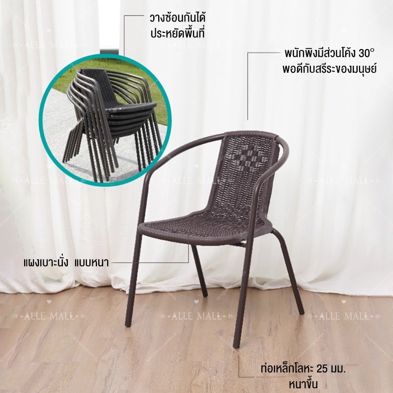 ALLE เก้าอี้หวายเทียม เก้าอี้แคมป์ปิ้ง โต๊ะและเก้าอี้ วางซ้อนกันได้และทนทานต่อแสง ลานในร่ม สีน้ำตาล ดำ 70ซม