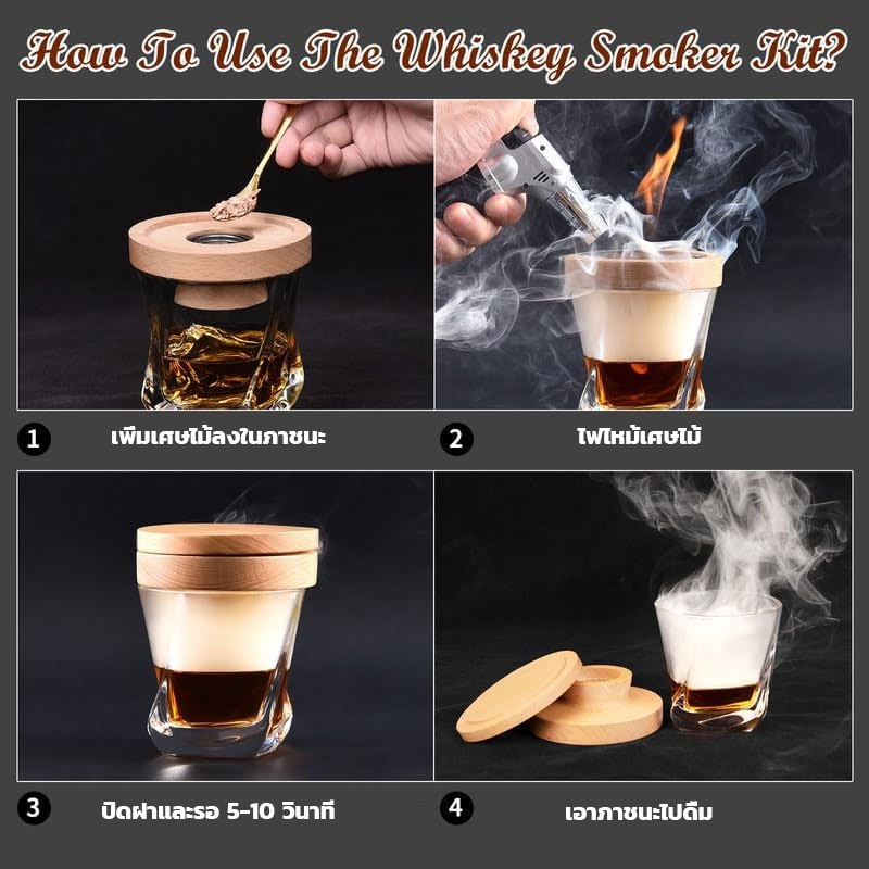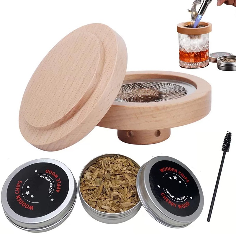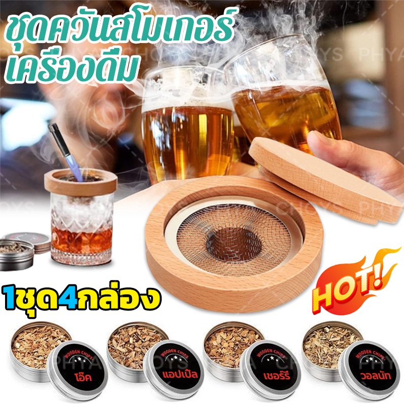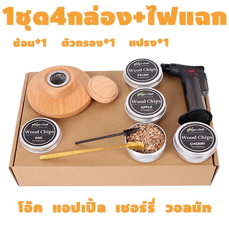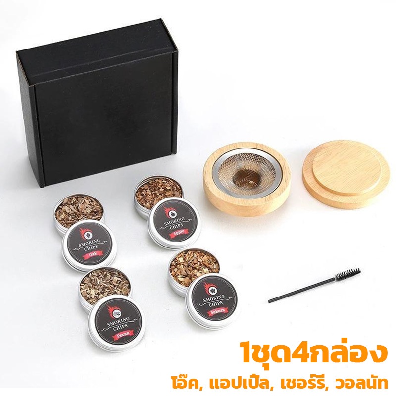 【1ชุด4กล่อง】Whiskey Smoker Kit ชุดค็อกเทลค็อกเทลรมควัน ชุดค็อกเทลรมควัน ชุดไม้รมควันค็อกเทลและอาหาร Wooden Smoker Set