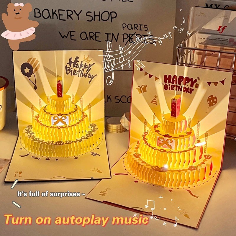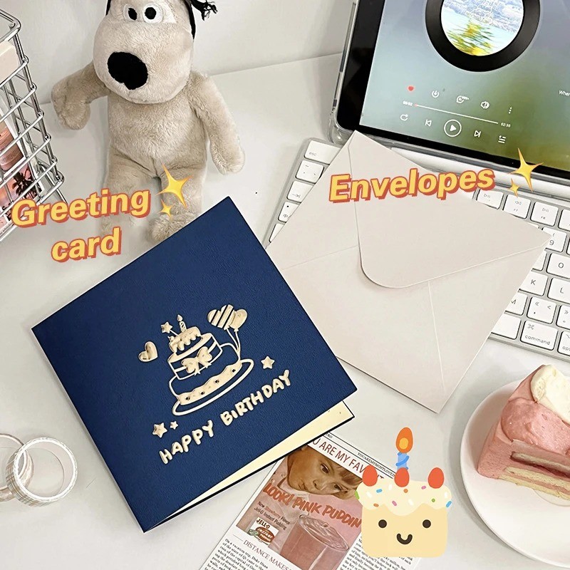 ตกแต่งการ์ดอวยพรวันเกิดเค้ก 3 มิติ / การ์ดอวยพรเค้กการ์ตูนป๊อป / ของขวัญโปสการ์ดสุขสันต์วันเกิด