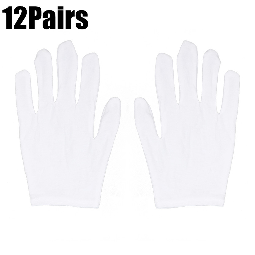 ถุงมือผ้าฝ้ายนุ่มสีขาวยืดสูง 12 คู่ / ถุงมือสปามือแห้ง / ถุงมือเครื่องประดับแน่นเต้นรํา