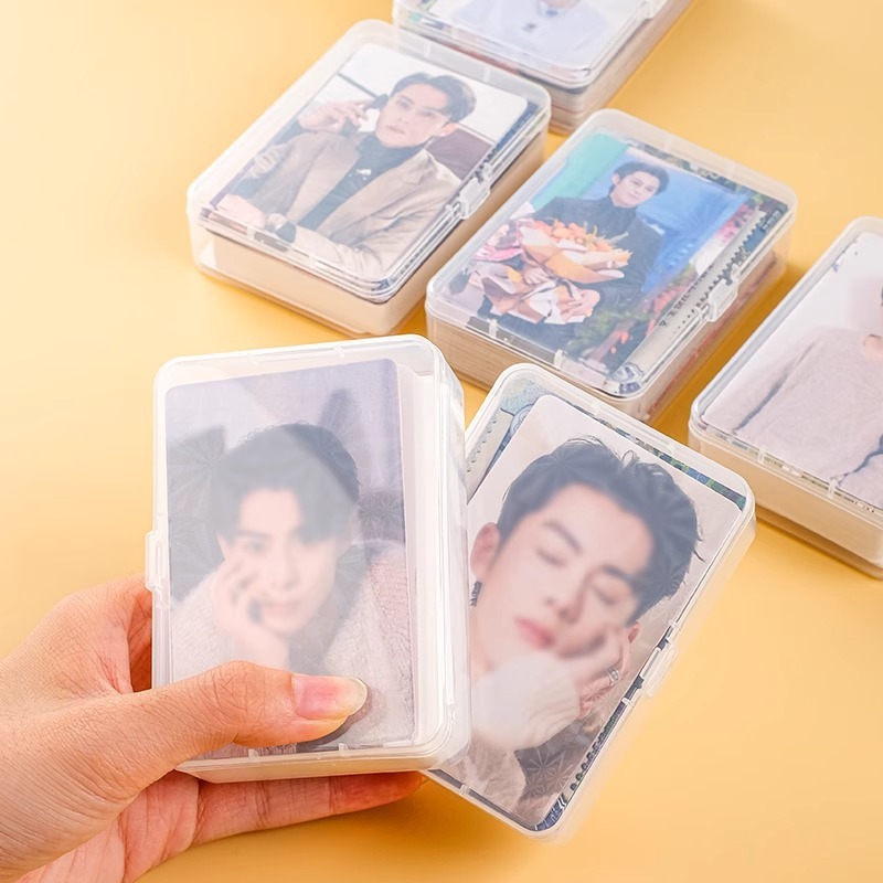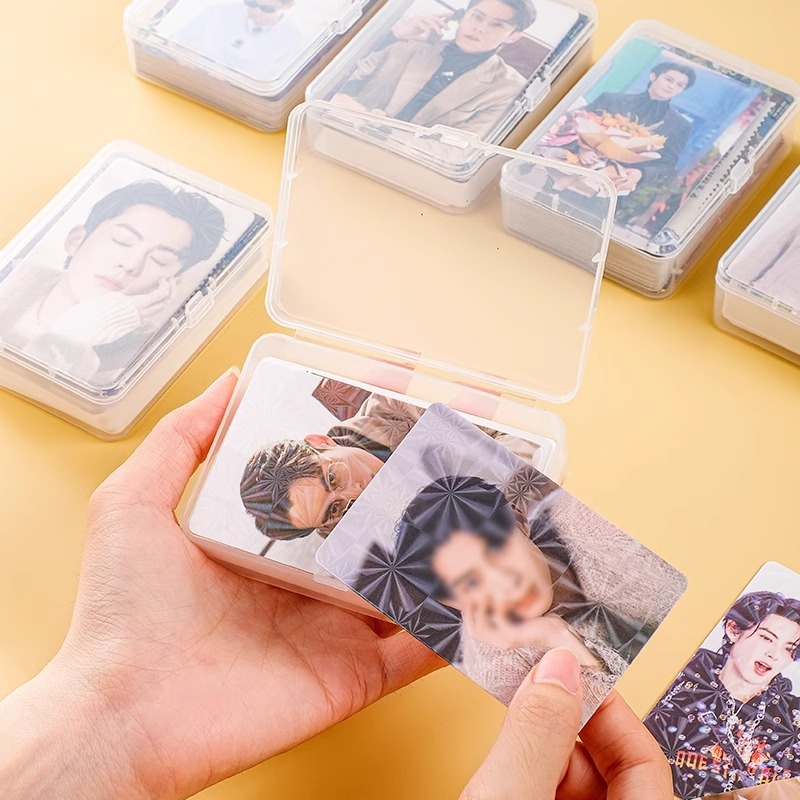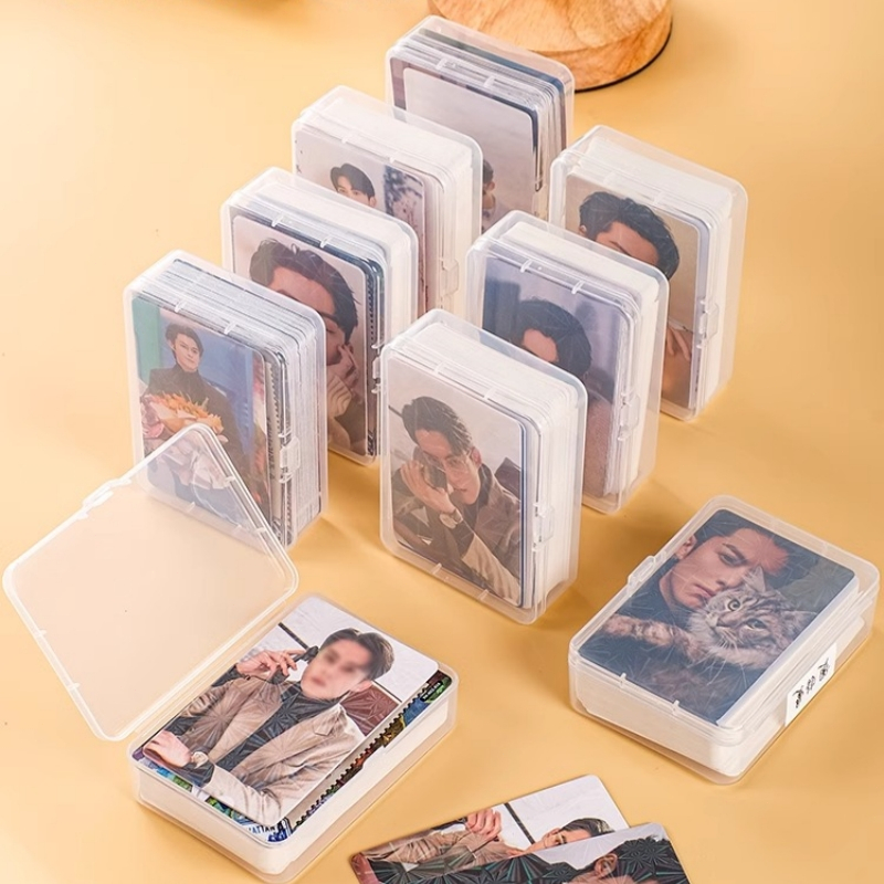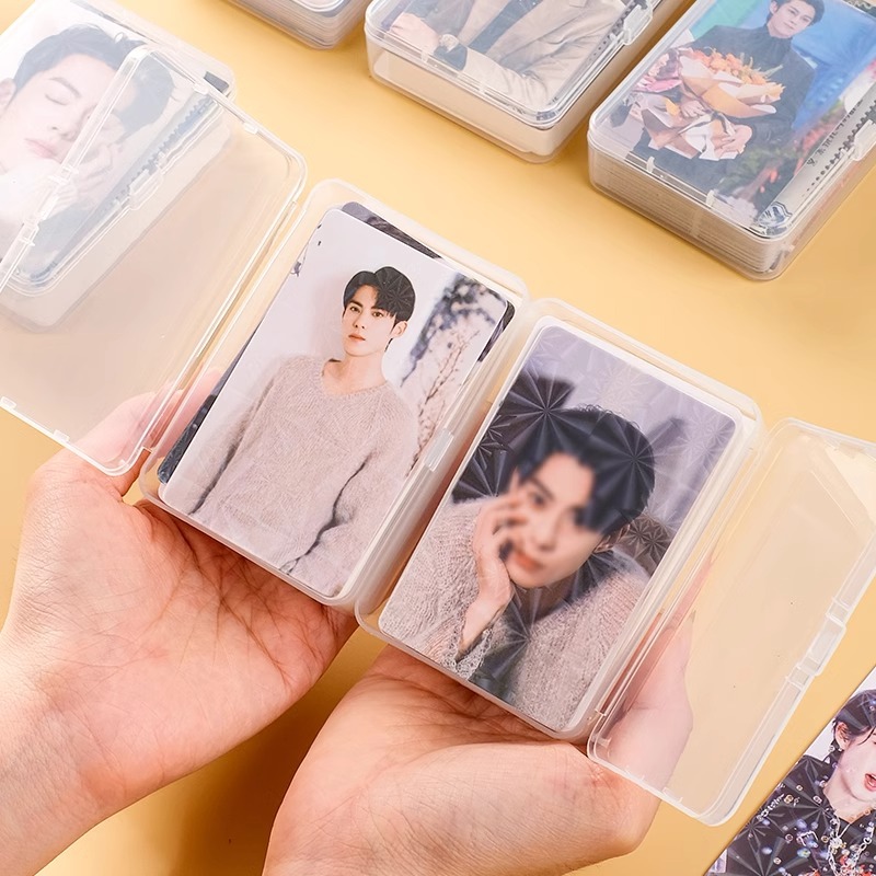 กล่องพลาสติกใสทรงสี่เหลี่ยมผืนผ้าขนาดเล็ก ทนทาน สำหรับใส่โฟโต้การ์ดไอดอล พร้อมฝาปิด วัสดุ PP