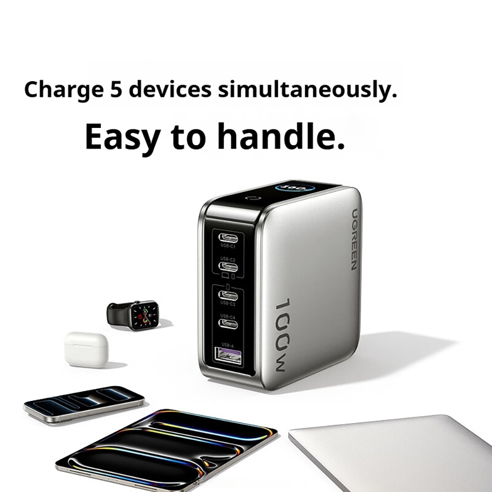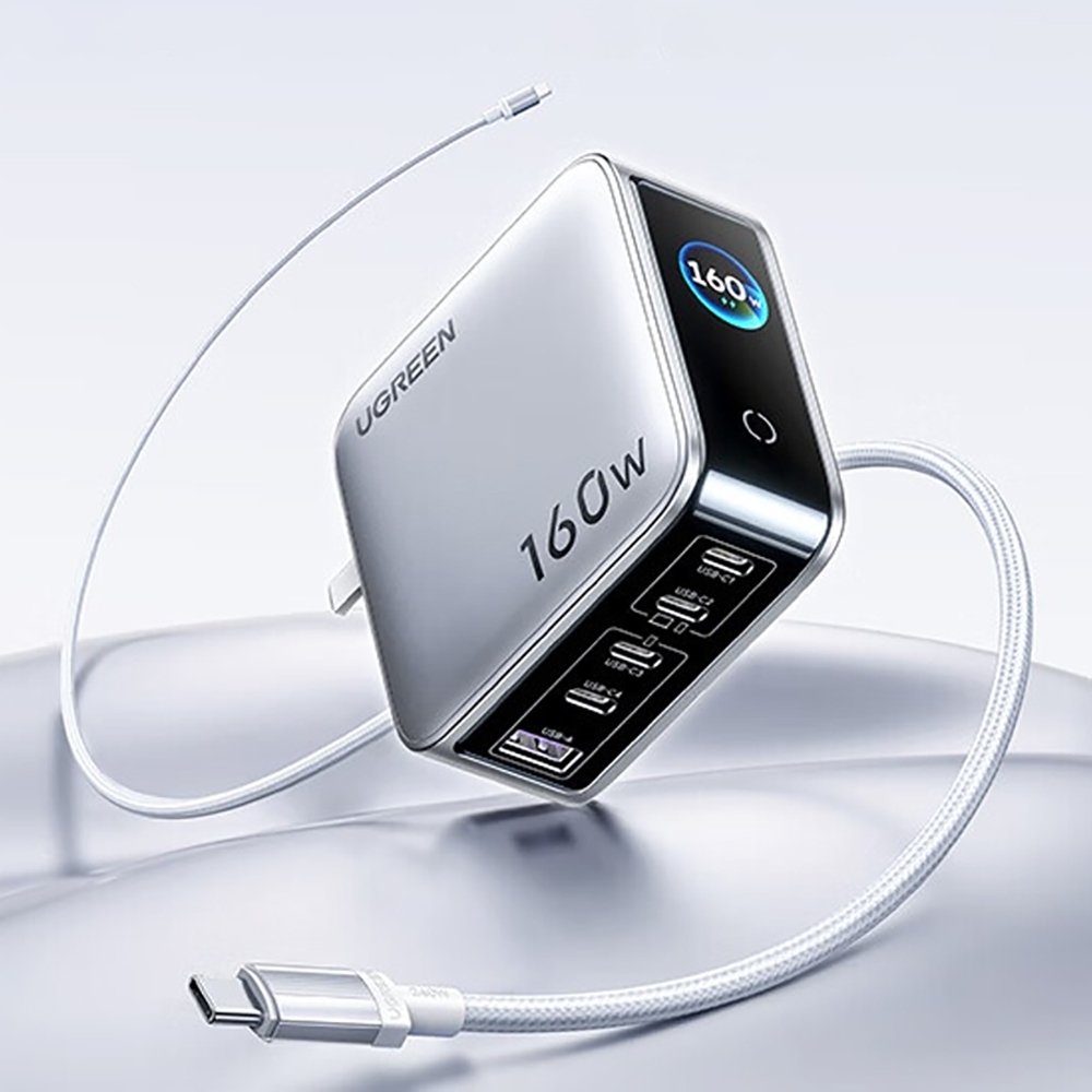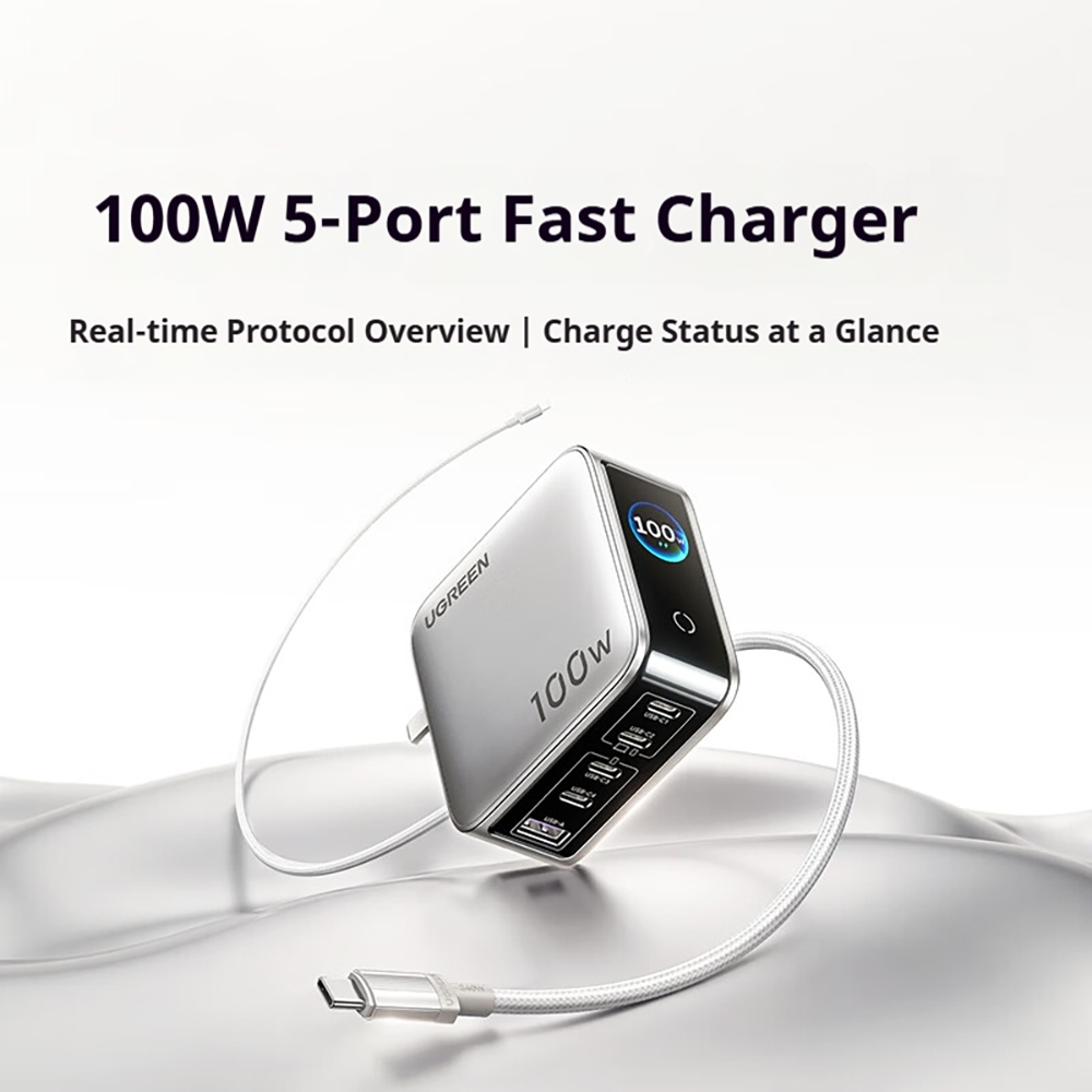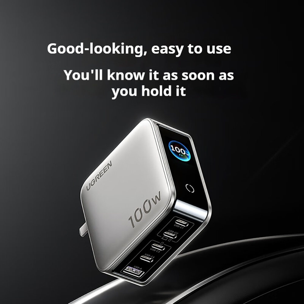 BANK BY UGREEN 100W GaN Fast Charger จอแสดงผลเวลาจริงเครื่องชาร์จแบบพับได้พร้อมสาย C ถึง C 240W