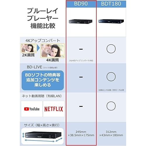 [Direct from JP] Panasonic Blu-ray Player, Full HD Upconversion Supported, Black, DMP-BD90