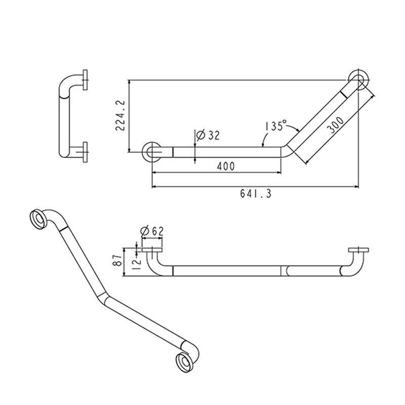 #VRH#ราวทรงตัวสเตนเลส135องศา เส้นผ่านศูนย์กลาง32มม. ขนาด30x40ซม.(ซ้าย)#FBVHC-TS792F