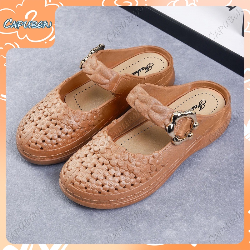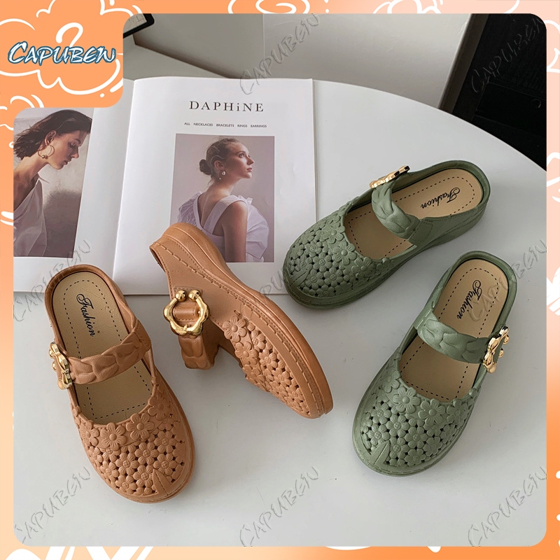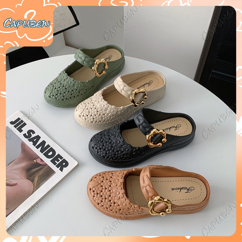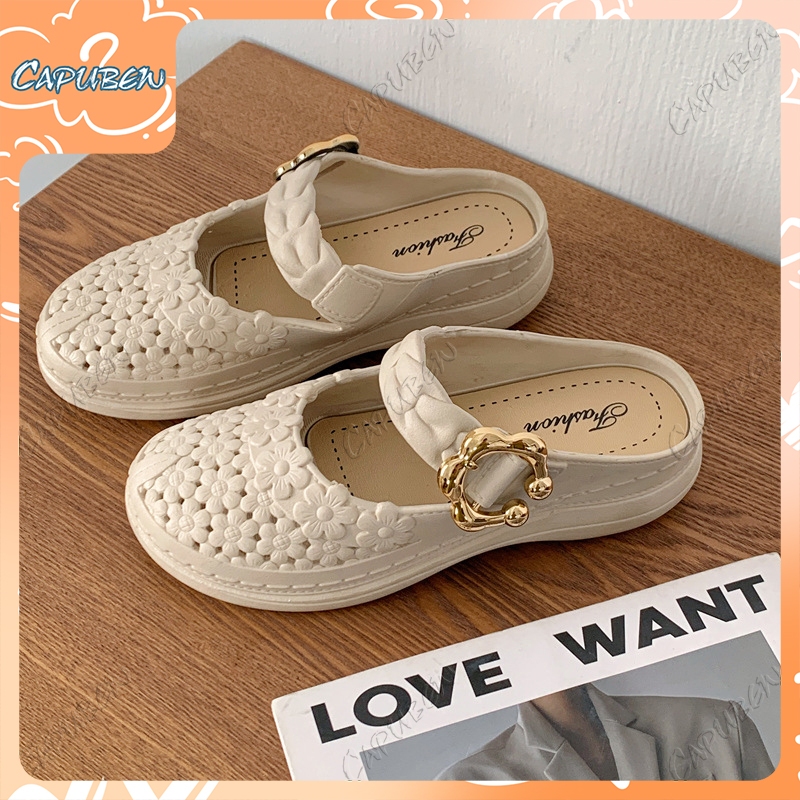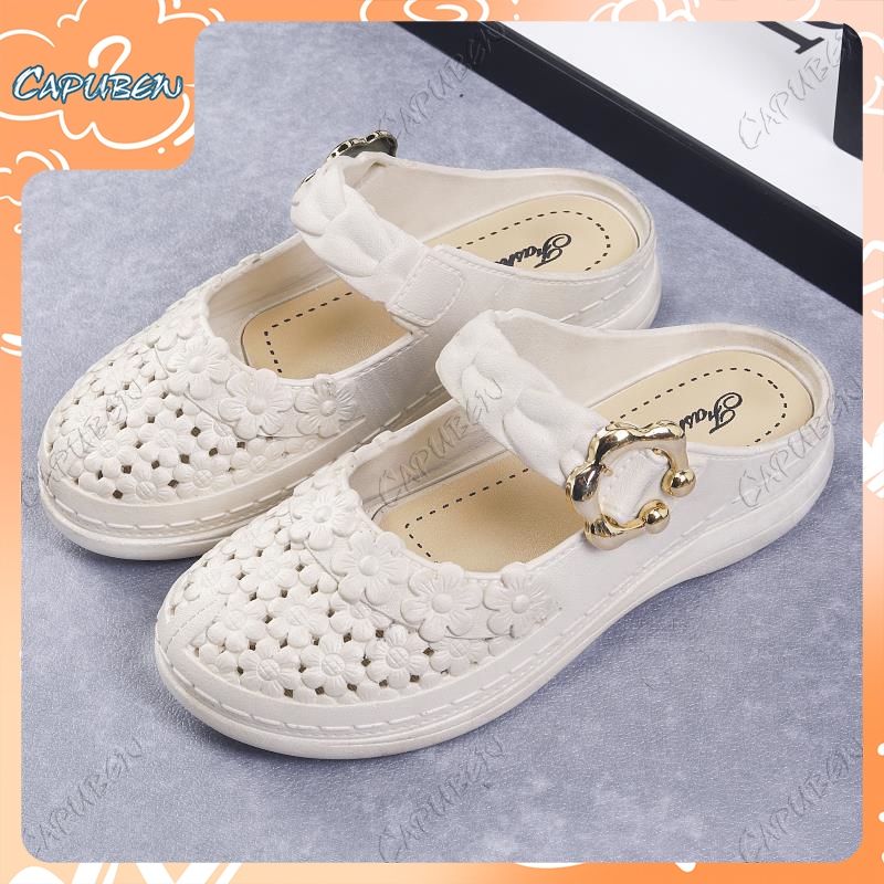 Capubew จัดส่งจากกรุงเทพฯ รองเท้าแตะแบบวกลูกไม้สำหรับผู้หญิง รองเท้าลำลอง ใส่สบาย พื้นนุ่ม รองเท้าแตะ