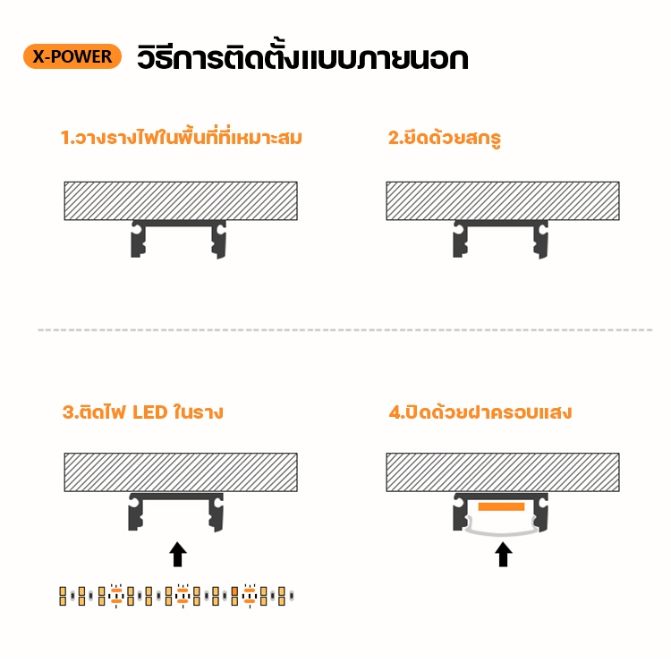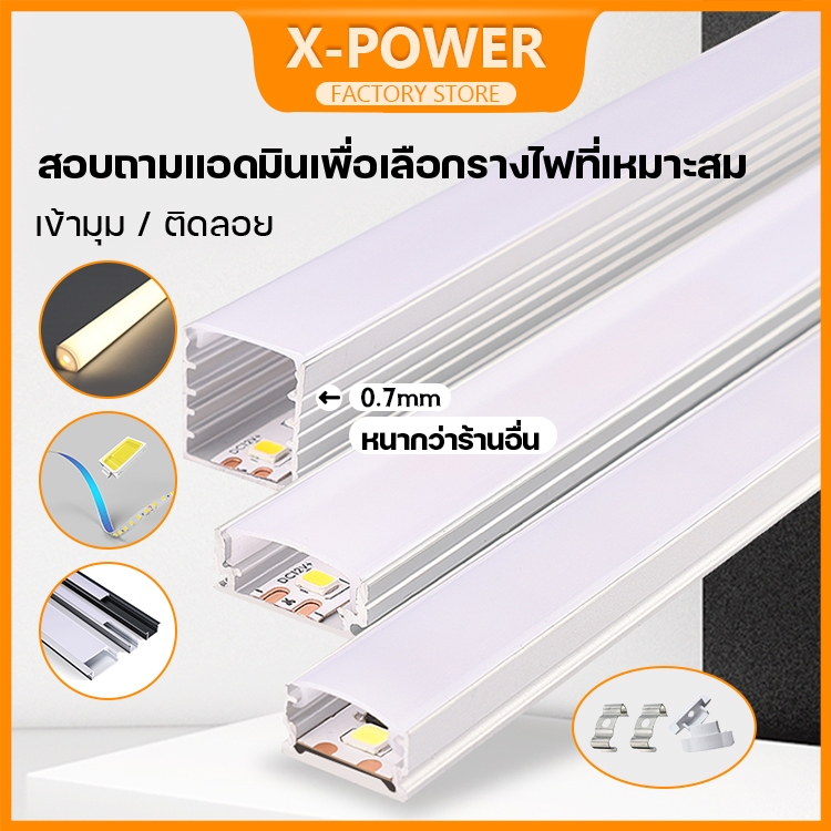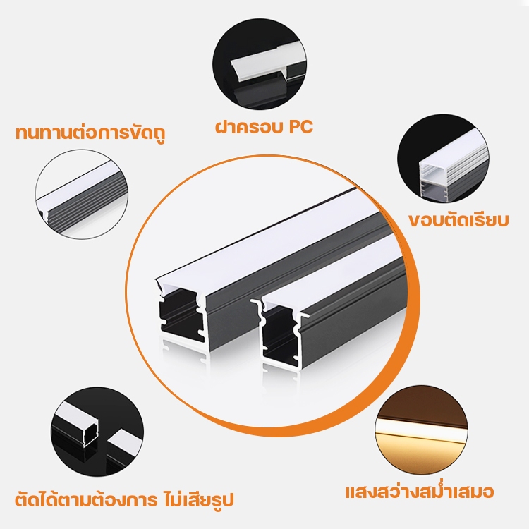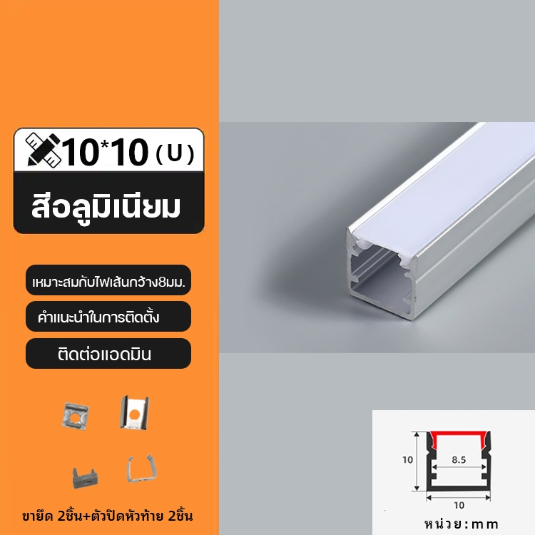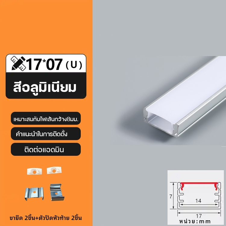 รางไฟ 2 เมตรรางใส่ แบบมีขอบ และไร้ขอบต รางไฟอลูมิเนียม LED Ribbon Aluminium Profile รรางไฟเส้น led รางไฟ สามเหลี่ยม