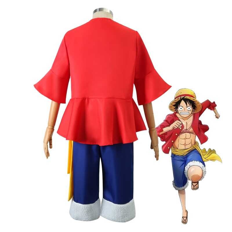 Piece One Luffy Cosplay Costumeผู้ใหญ่เต็มหนึ่งชิ้นลูฟี่คอสเพลย์