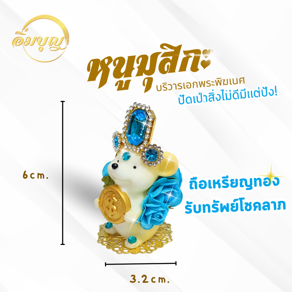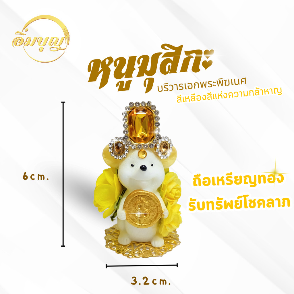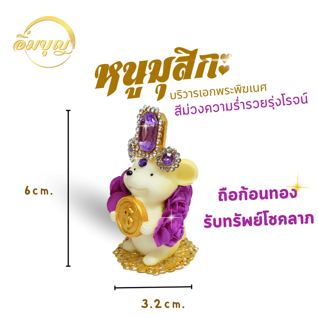 {หนูมุสิกะ ถือเหรียญทองรับทรัพย์ ประดับเพรชสี่เหลี่ยม } ถวายพระพิฆเนศ พร้อมส่งจากไทย เพื่อความสำเร็จ ร่ำรวยเงินทอง
