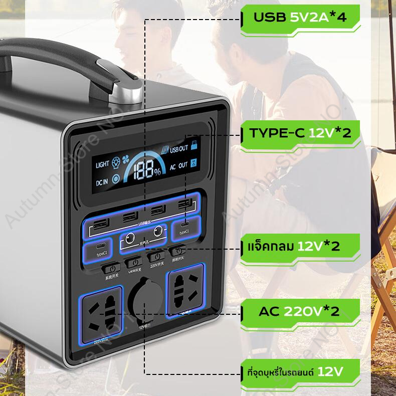 Portable Power Station 600W/400000mAh power box220v กล่องสํารองไฟ PowerStation ไฟสำรองแคมปิ้ง พาวเวอร์บ๊อก ธนาคารพลังงาน