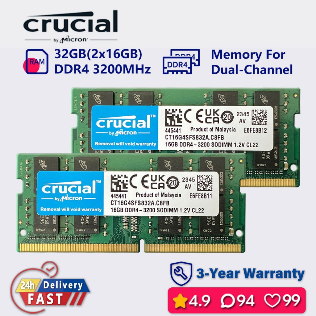 Crucial 16gb 32gb 64gb 3200mhz ddr4 หน่วยความจําสองช่อง ram แล็ปท็อป sodimm pc4 25600s