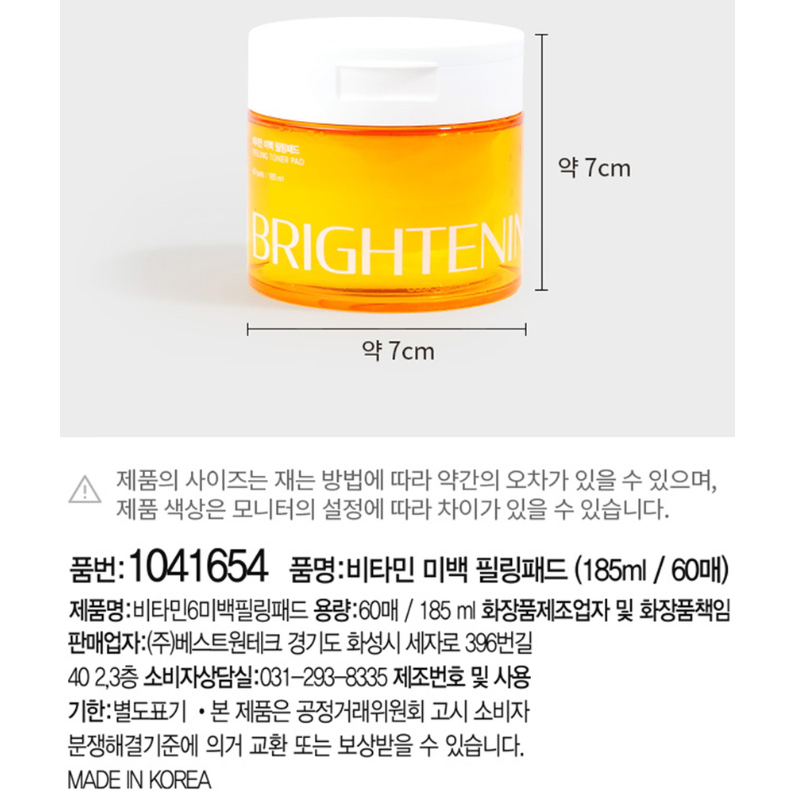 Vitamin Brightening Peeling Pad (185ml, 60 แผ่น)
