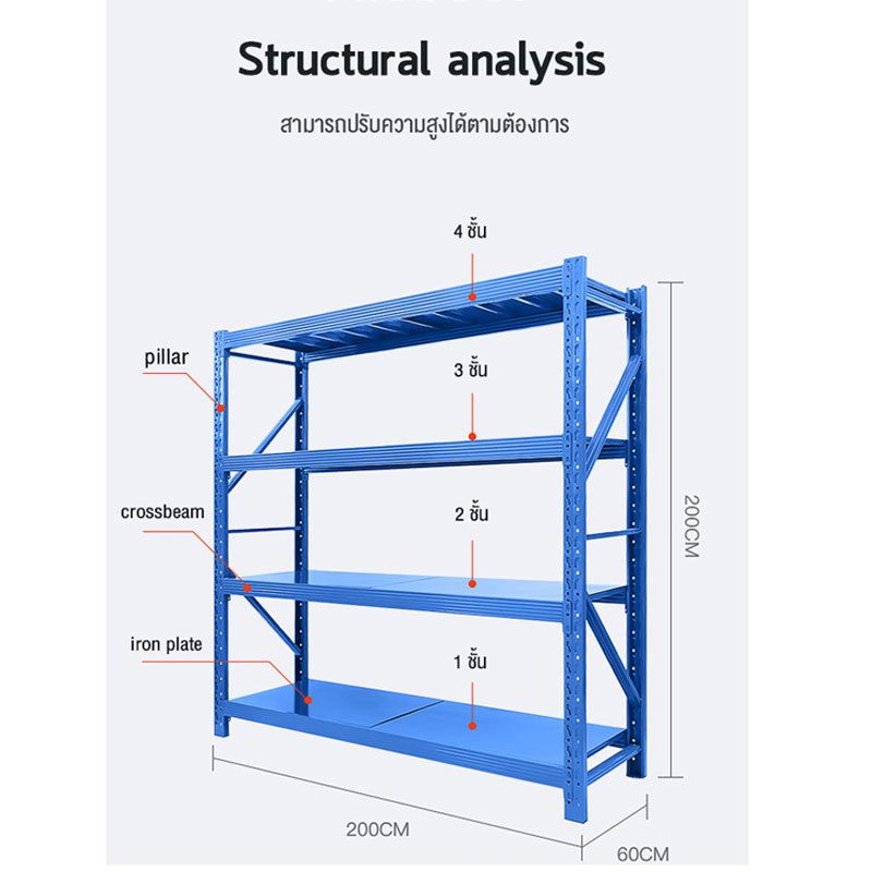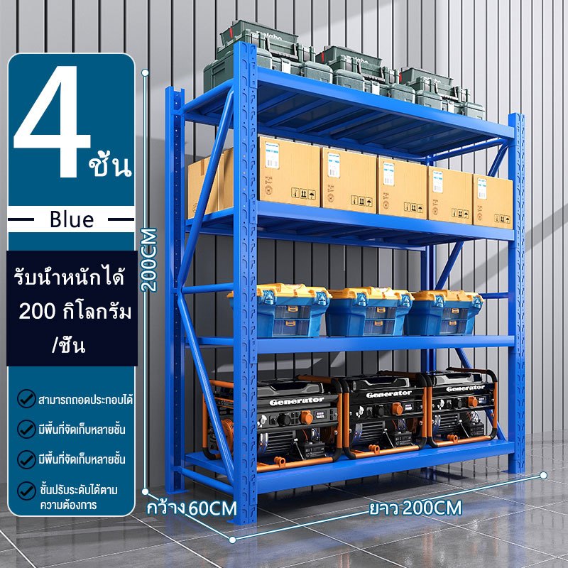 ชั้นวางของ ขนาดใหญ่ (200*200*60CM) 2เมตร รองรับ 800กิโล เหล็กหนา โกดัง คลังสินค้า ชั้นเก็บอุปกรณ์ ออกใบกำได้