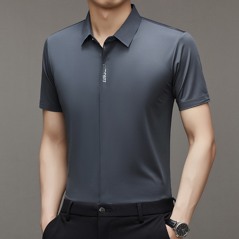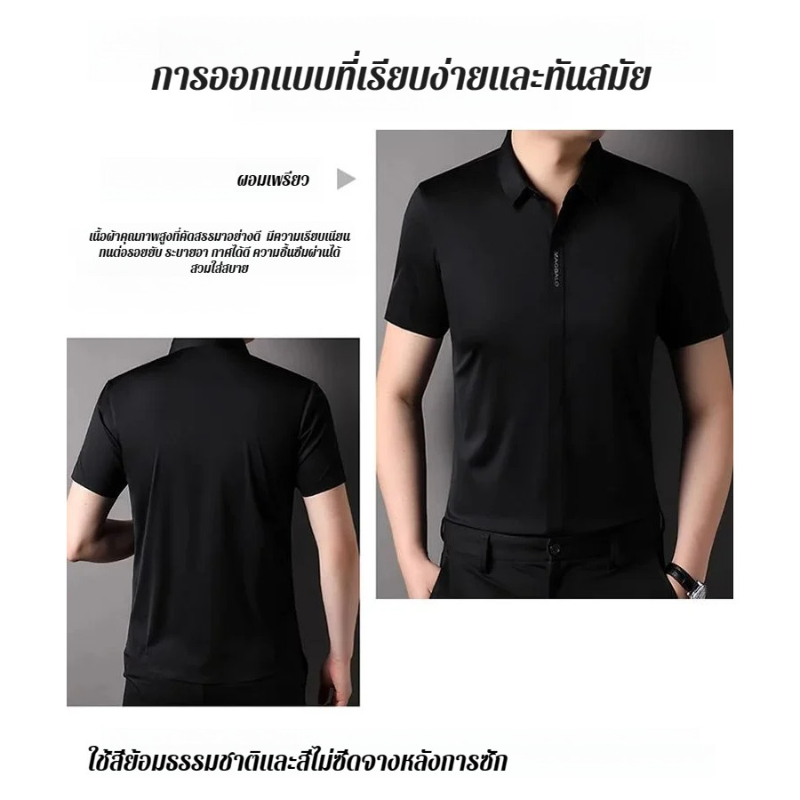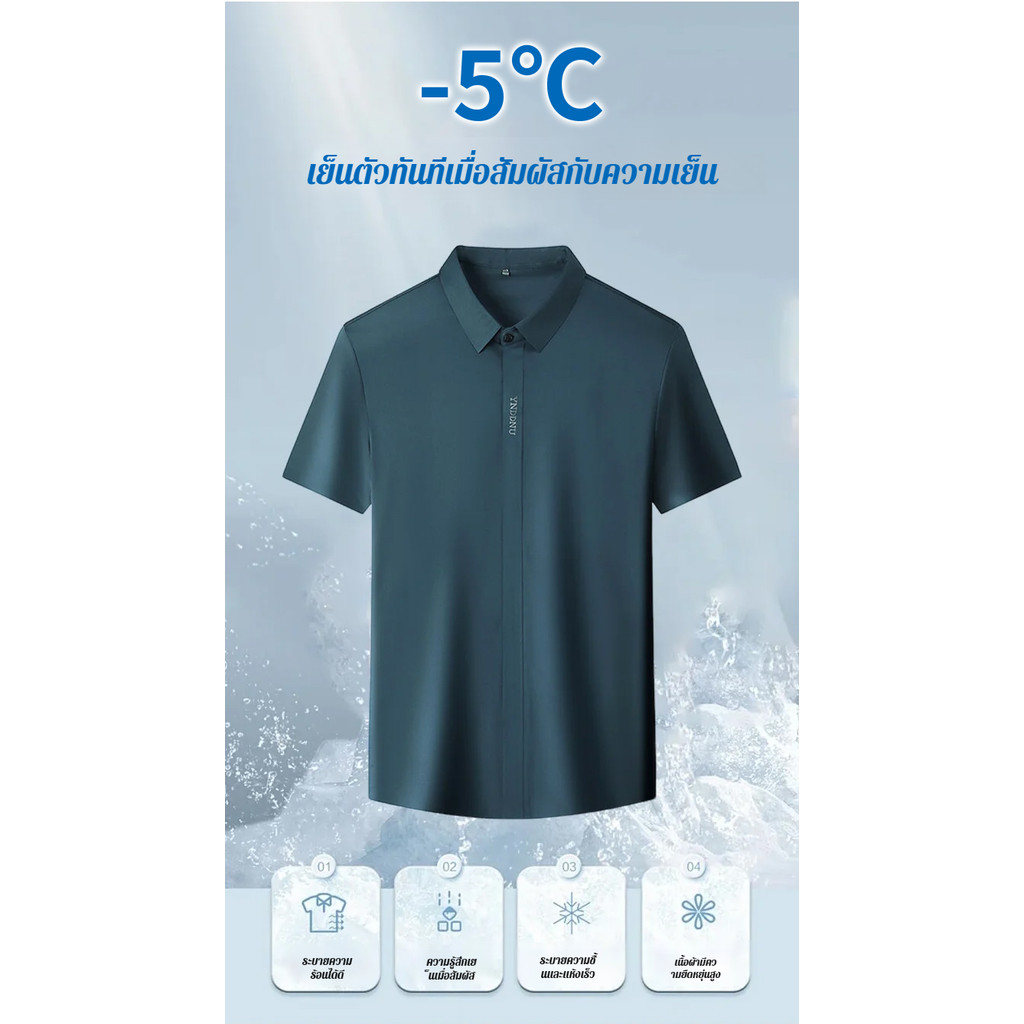 เสื้อเชิ้ตแขนสั้นสำหรับทำงาน ทำจากผ้าไหมน้ำแข็ง มีความยืดหยุ่นสูง