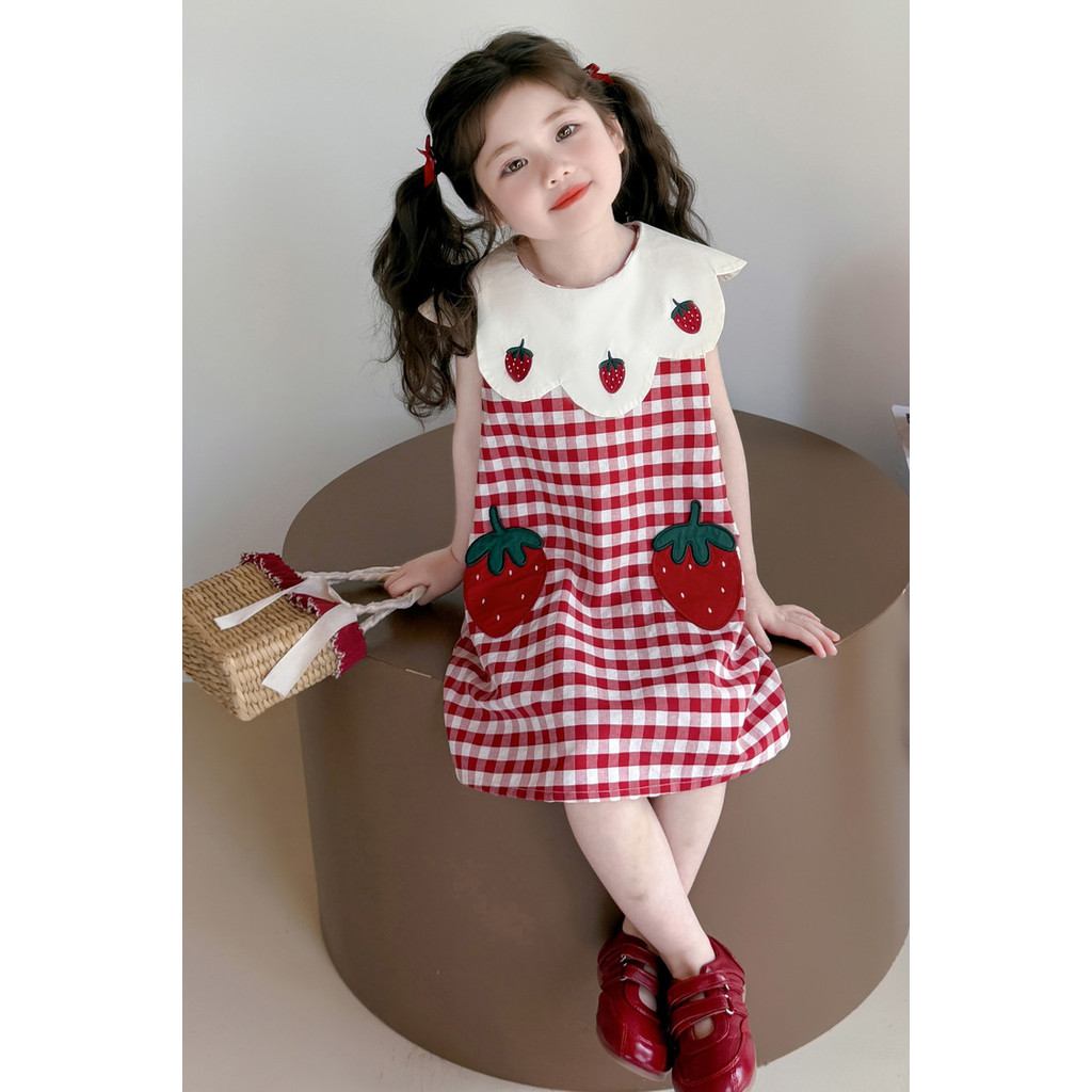 [พร้อมสต็อก] สาวเสื้อผ้าสาวสตรอเบอร์รี่ชุดสาวชุดเจ้าหญิงสีแดง