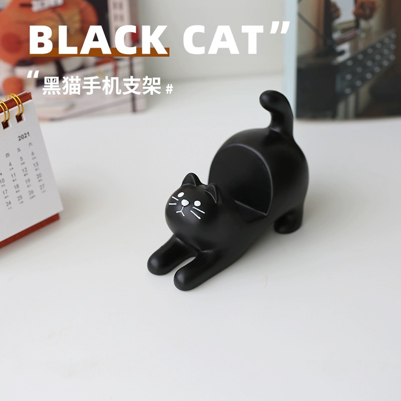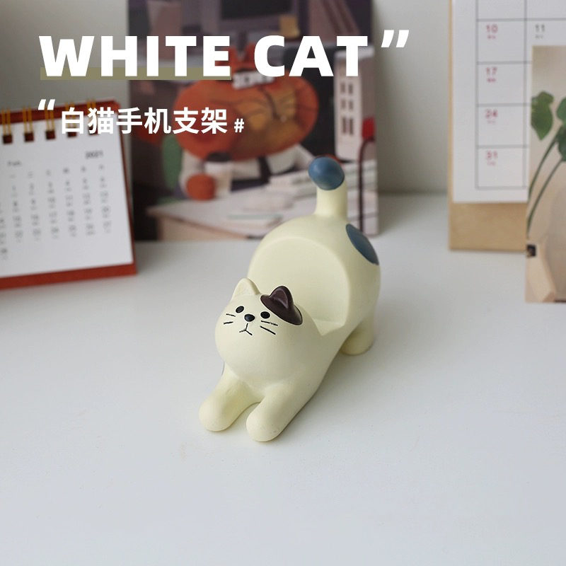 ที่วางมือถือแมวยืดเส้น🐱ที่ตั้งเรซิ่นน่ารัก ของตกแต่งโต๊ะบำบัดใจ Zakka Decole