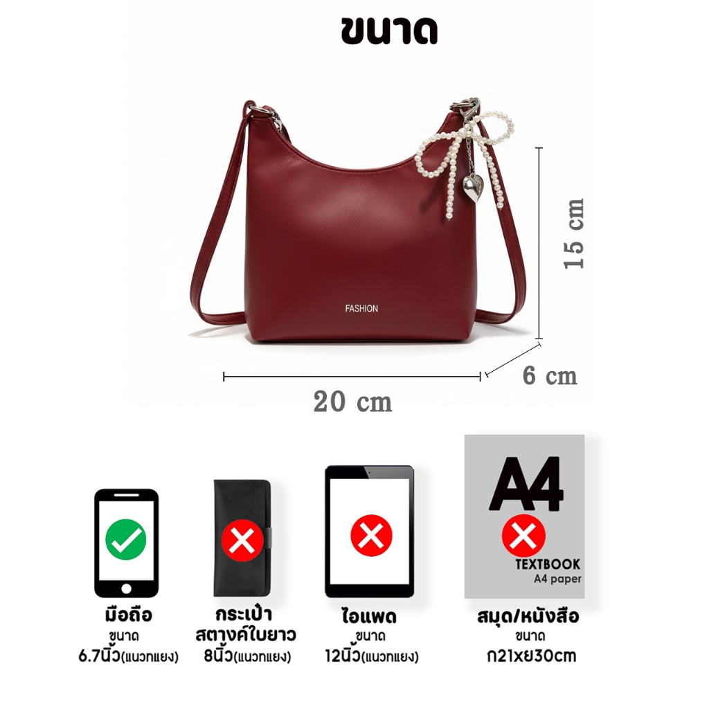 ส่งด่วน GUCSELECTED(B2112) กระเป๋าสะพายข้างใบเล็กหนังพียู+ที่ห้อยโบว์