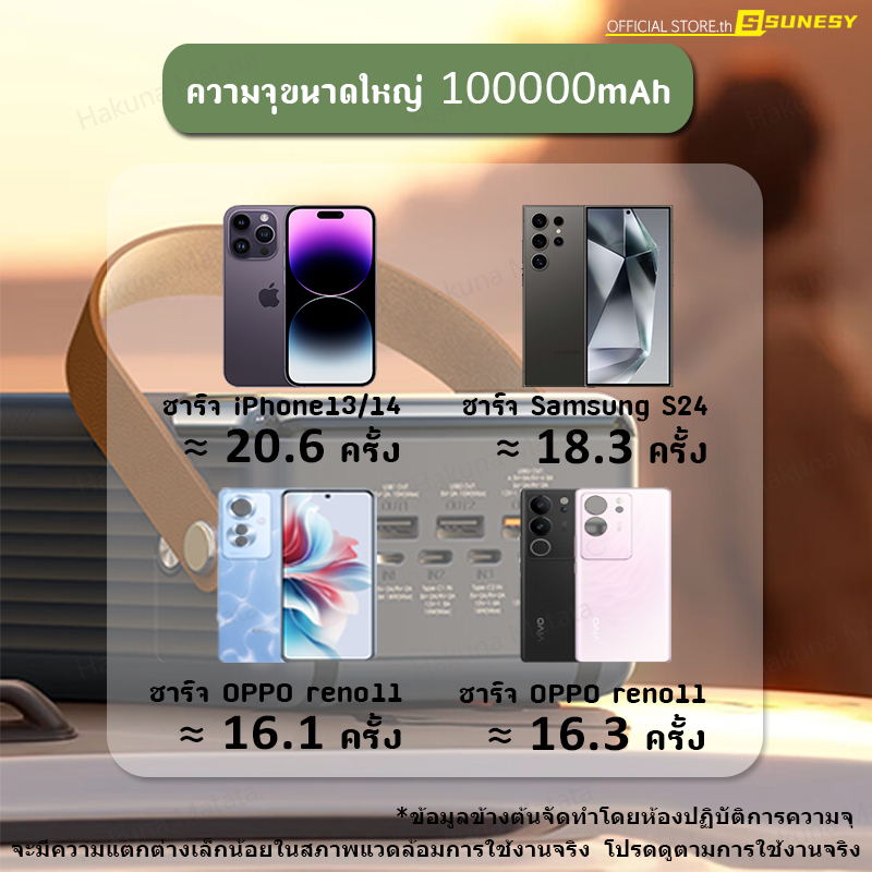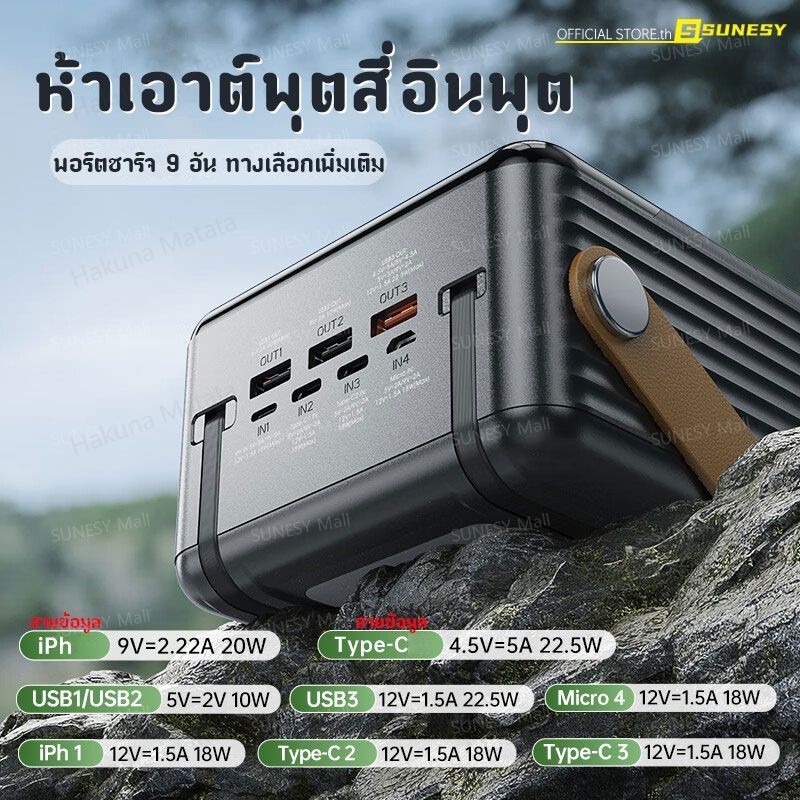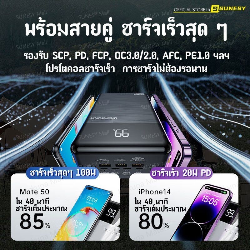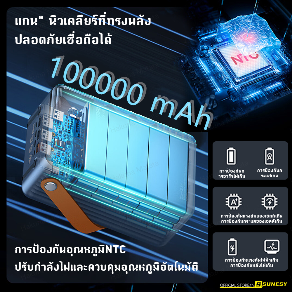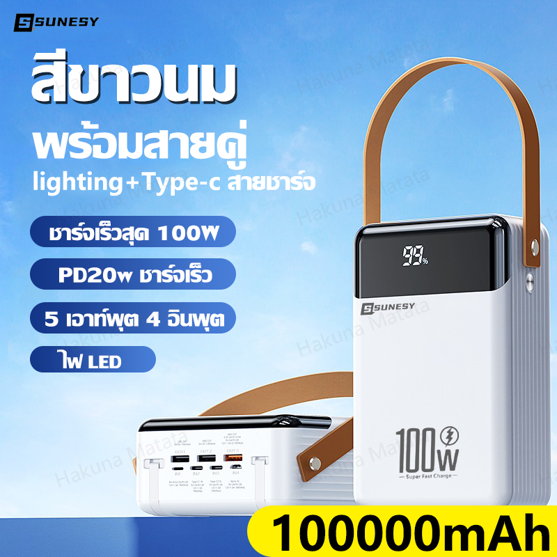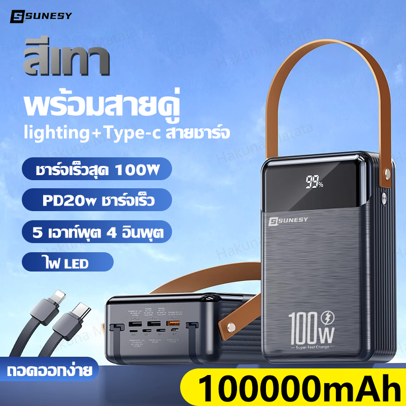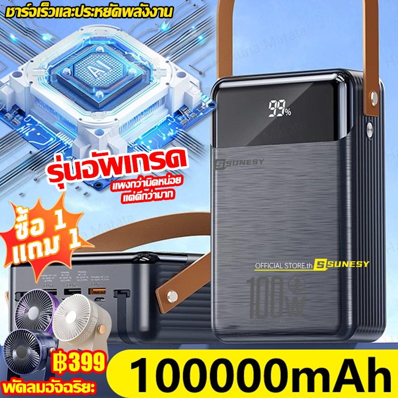 🔥ขายฮิตในไทย🔥 SUNESY พาวเวอร์แบงค์ 100000 mAh ชาร์จ1ครั้งใช้ได้1เดือน พอร์ตเอาต์พุตหลายพอร์ต ของแท้100% แบตสำรอง Powerbank